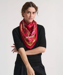 Souleiado Femme Accessoires Carré En Twill De Soie Italienne Rose Rouge 90 X 90 Cm | Rose & Rouge