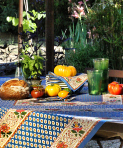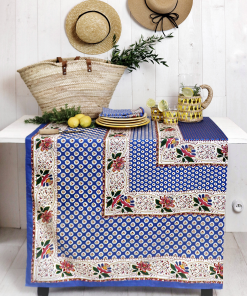 Souleiado Maison Maison Nappe Rectangulaire « servanes » Blanc Turquoise 170*270 | Blanc & Turquoise