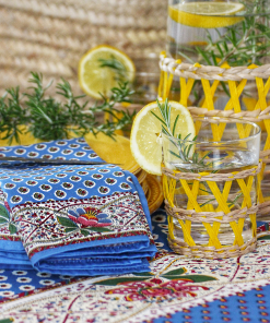 Souleiado Maison Maison Nappe Carrée « servanes » Blanc Turquoise 170*170 | Blanc & Turquoise