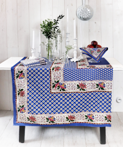Souleiado Maison Maison Nappe Rectangulaire « servanes » Blanc Turquoise 170*270 | Blanc & Turquoise