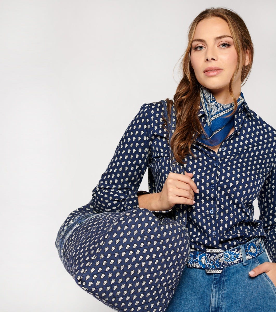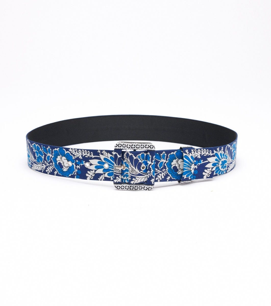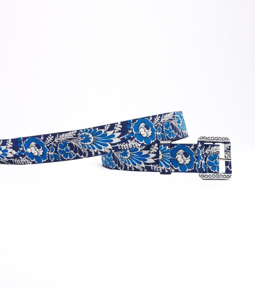 - Beatriz est notre ceinture iconique en tissu imprimé Frise Le petit artichaud bleu blanc. Sa boucle carrée est recouverte de tissu. Cette ceinture large est parfaite pour cintrer une robe ou une jupe, tout en rehaussant votre tenue.
