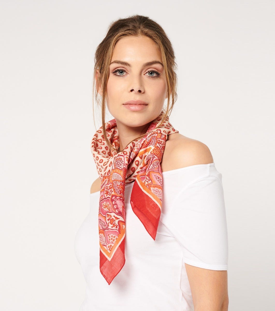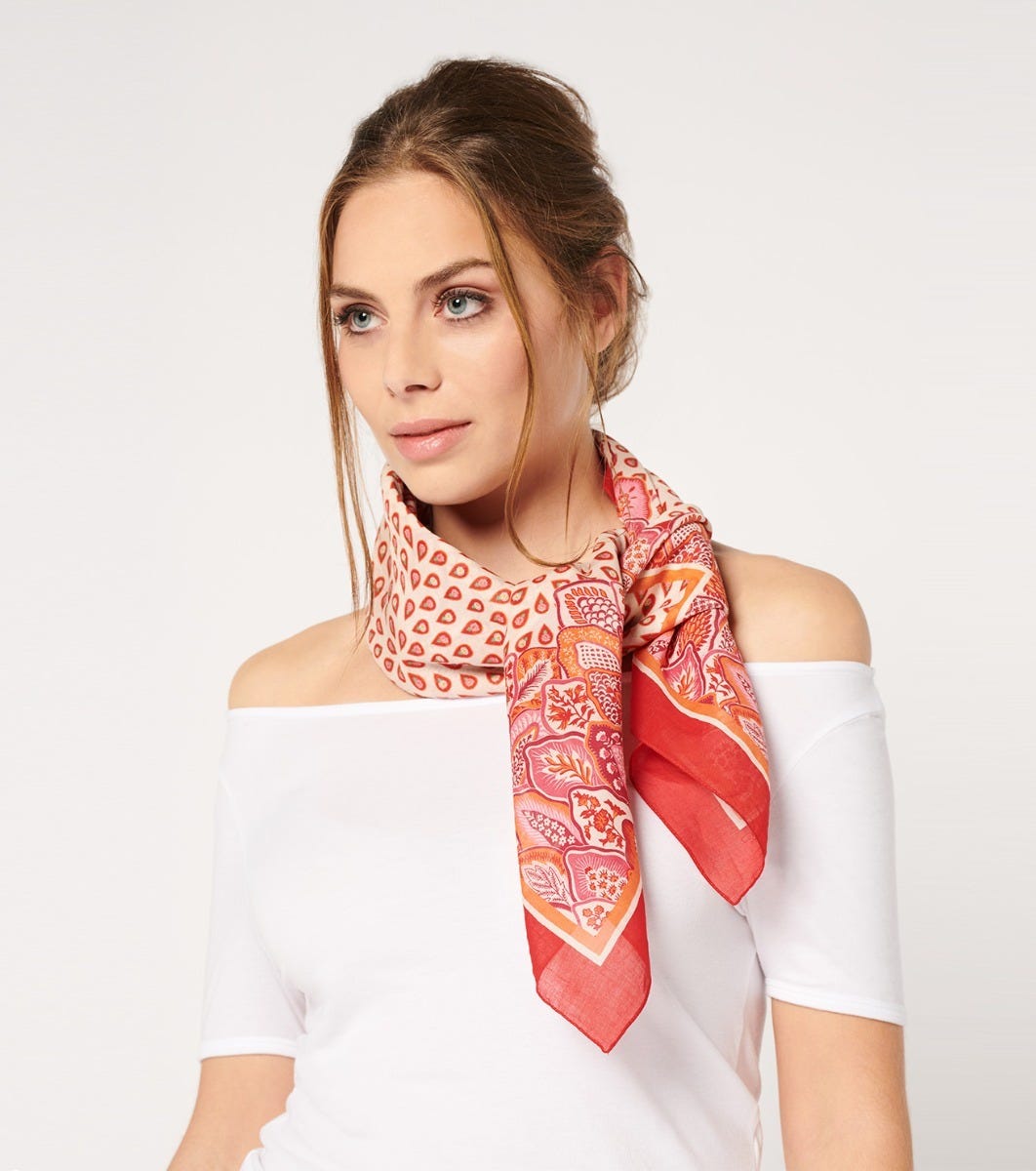 Souleiado Femme Accessoires Carré Coton Paradiso Rose Rouge | Rose & Rouge