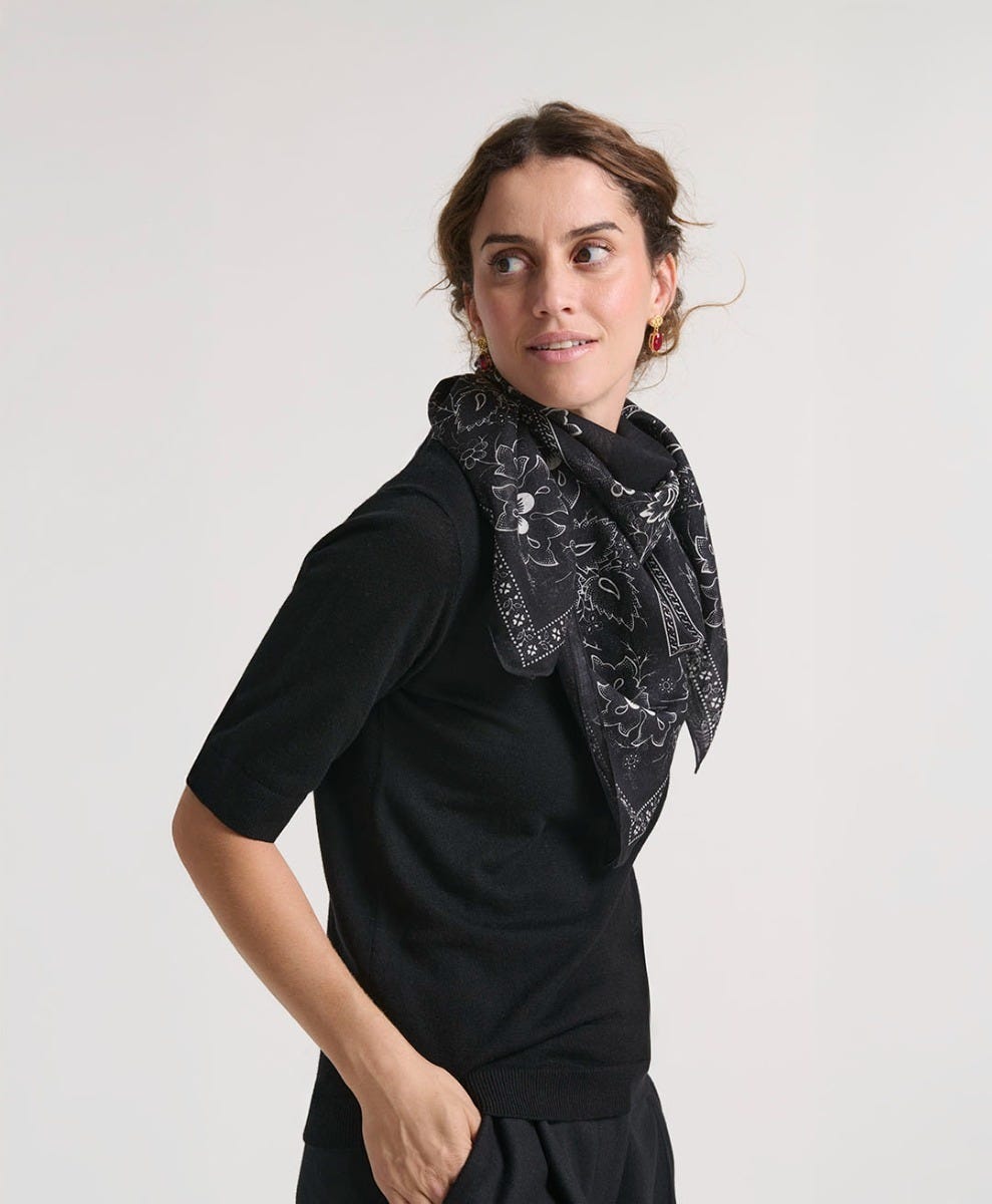 Souleiado Femme Accessoires Carré Laine Et Soie Pétrarque Noir Blanc 90×90 Cm | Noir Et Blanc
