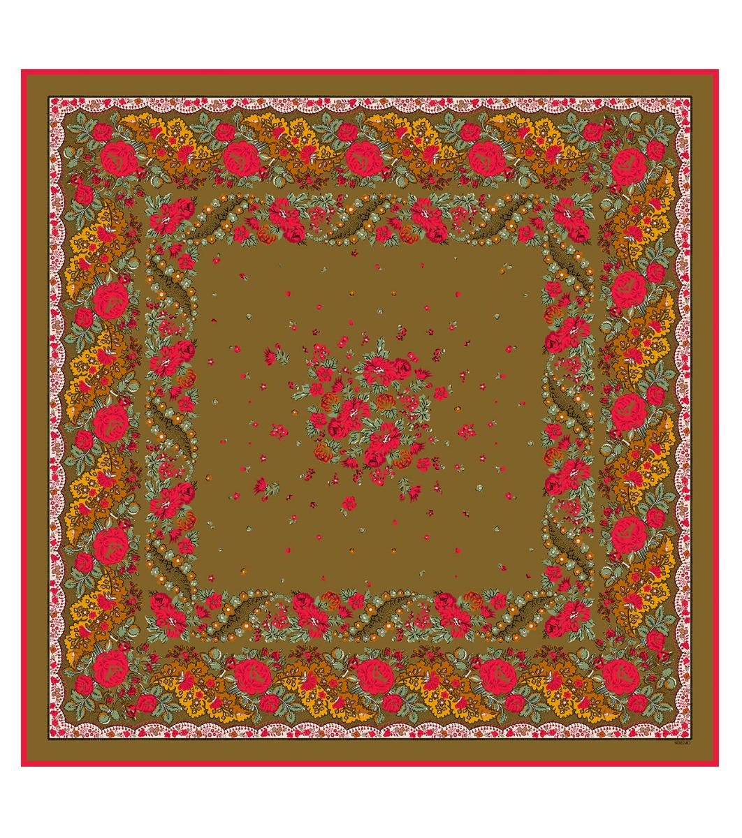 Souleiado Femme Accessoires Carré Soie Double Face Le Petit Trianon Kaki Ocre | Kaki & Ocre
