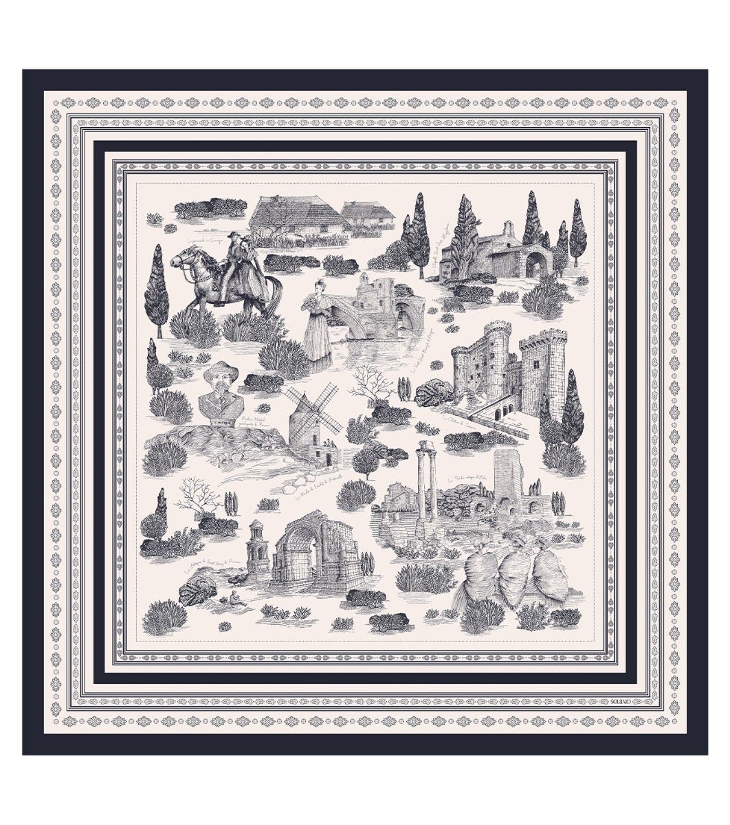 Souleiado Femme Accessoires Carré Soie Promenade En Provence Écru-nuit 90 X 90 Cm | Écru