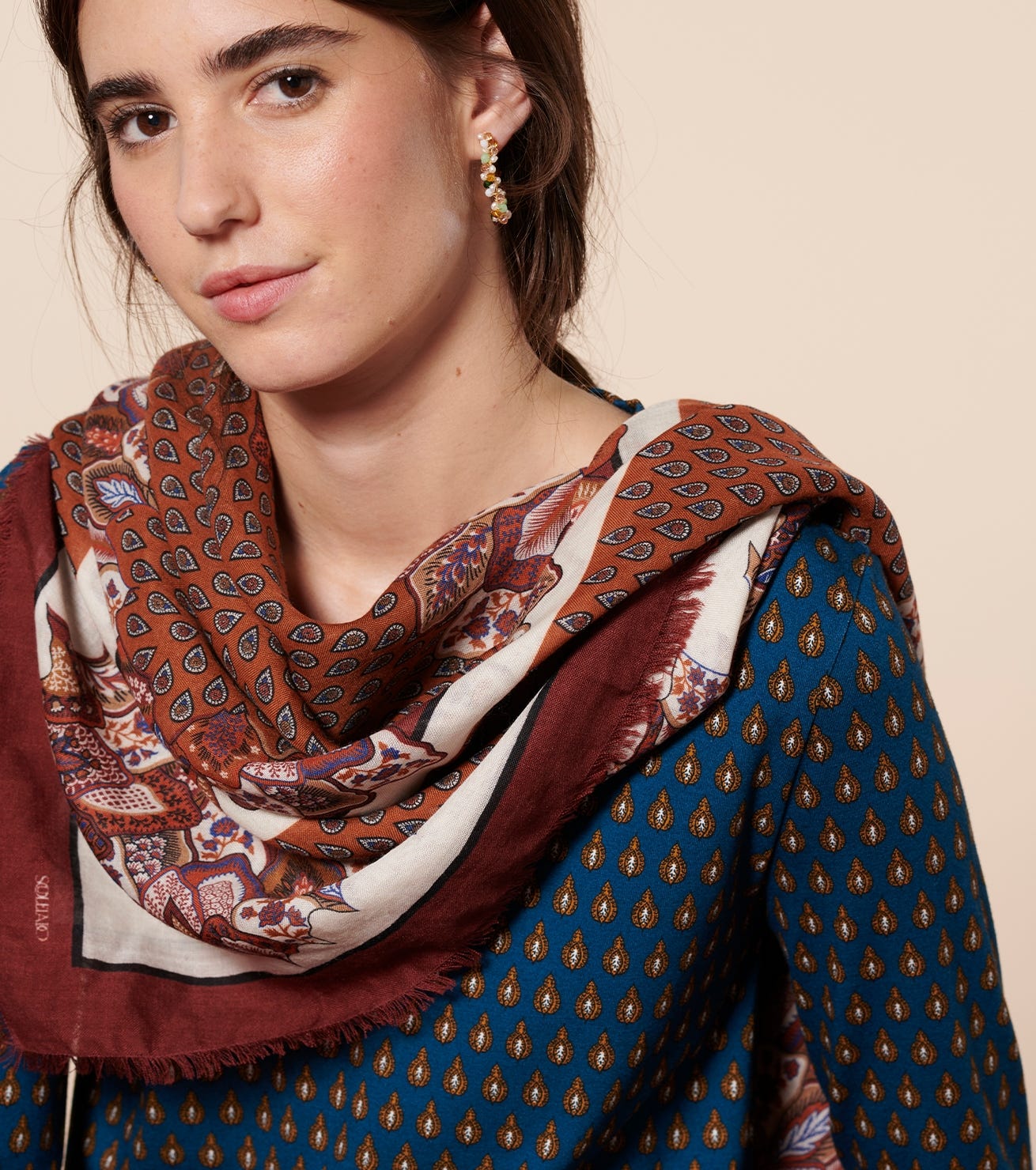 Souleiado Femme Accessoires Châle En Laine Et Soie Paradiso Châtaigne 140 X 140 Cm | Châtaigne