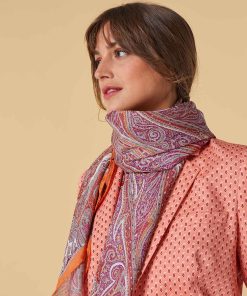 Souleiado Femme Accessoires Châle Mousseline De Soie Grand Cachemire Orange 135 X 135 Cm | Orange