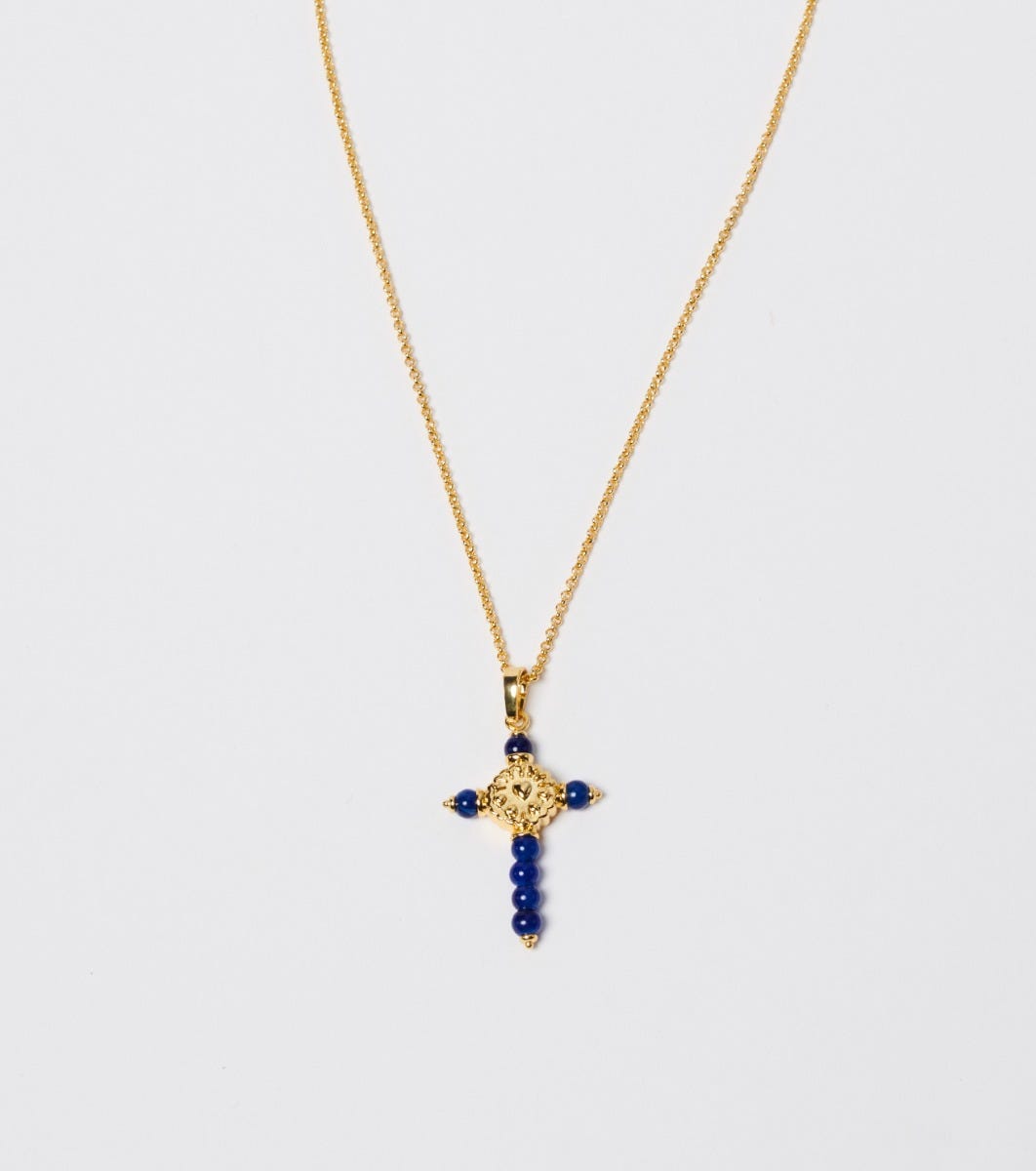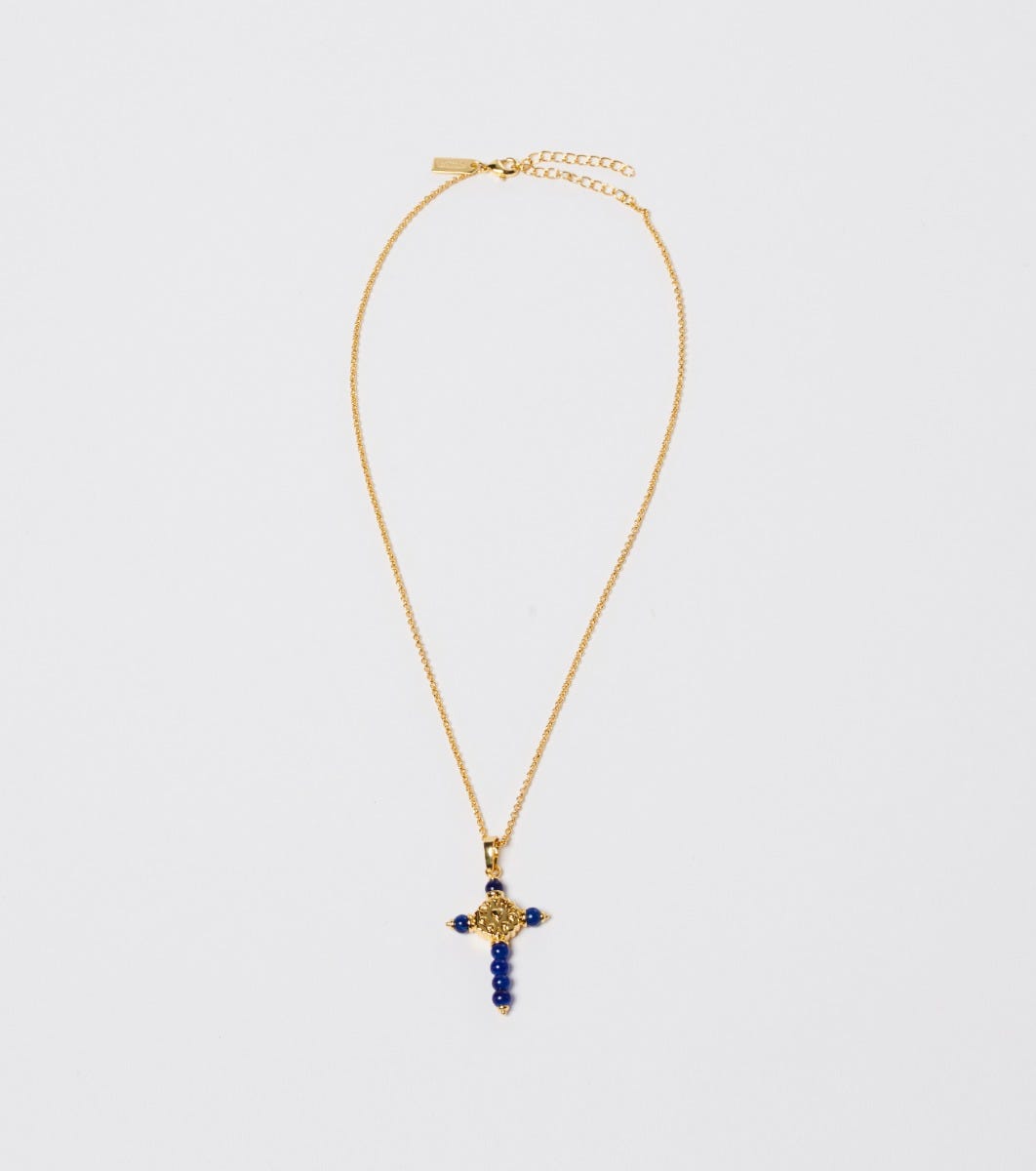 Souleiado Femme Accessoires Collier Croix Fleur D’arles Et Perles Bleu Lapis | Bleu Lapis