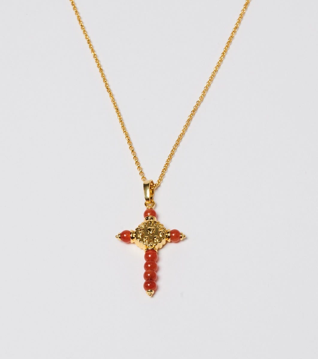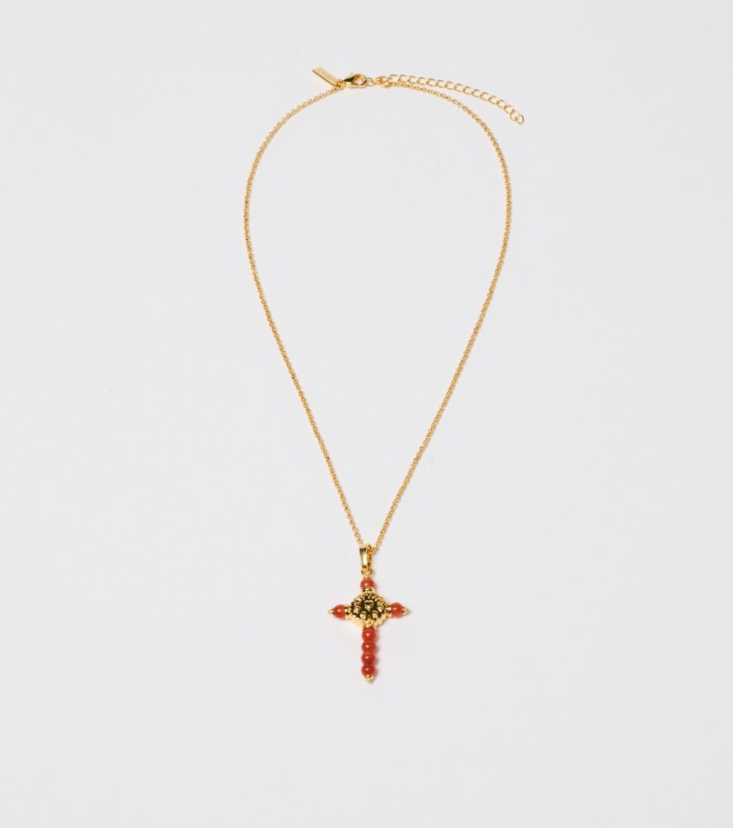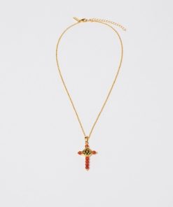 Souleiado Femme Accessoires Collier Croix Fleur D’arles Et Perles Corails | Corail