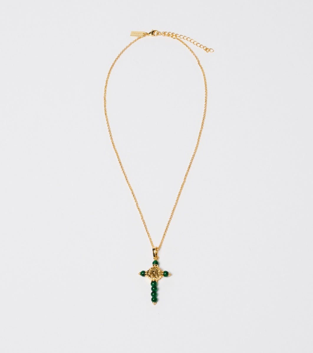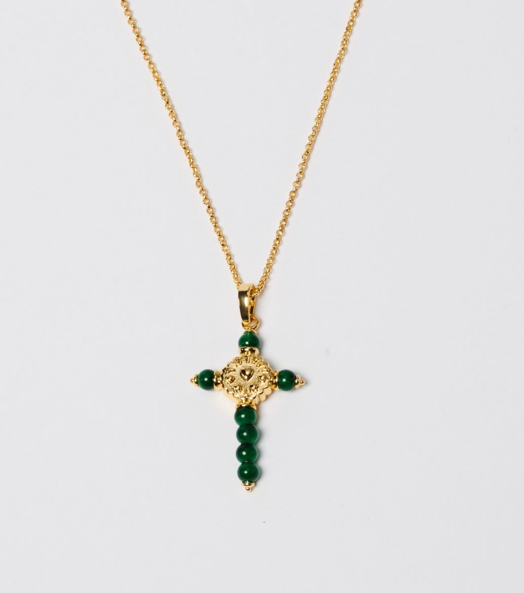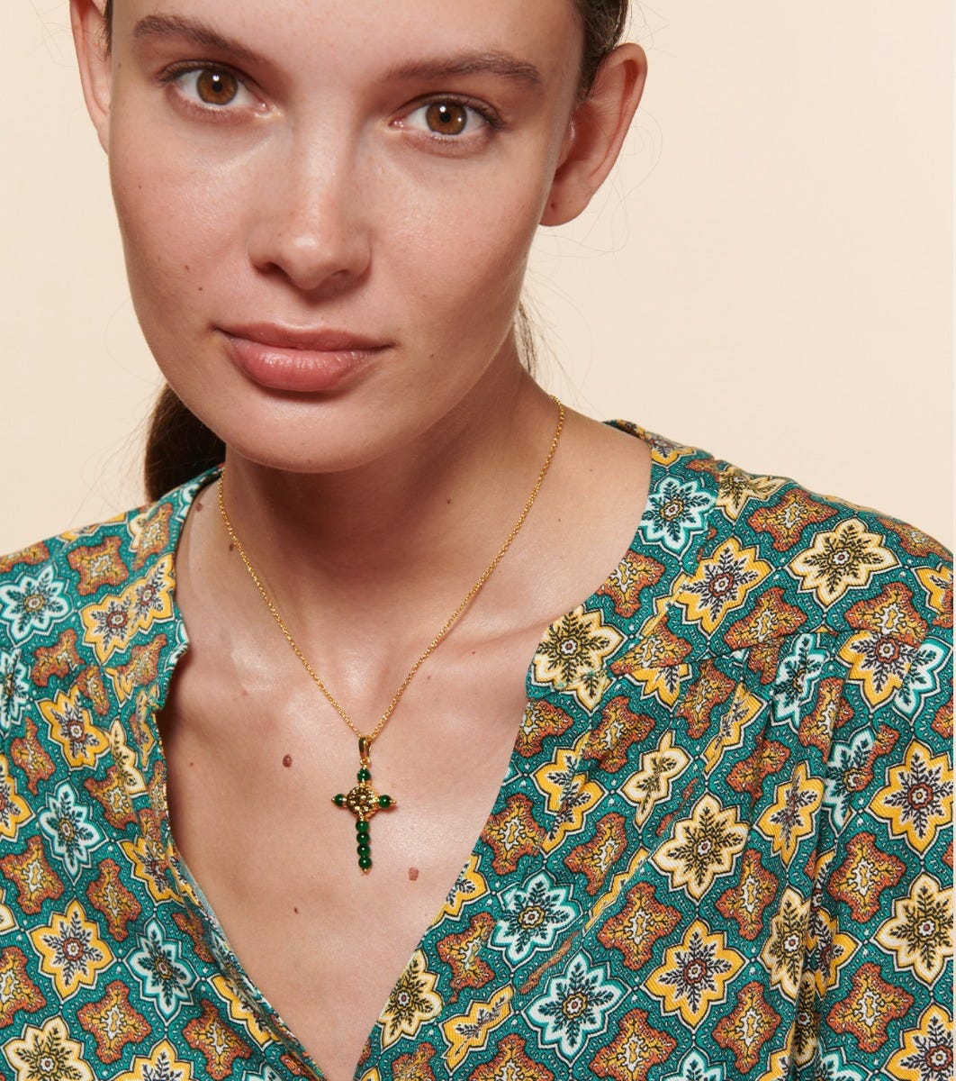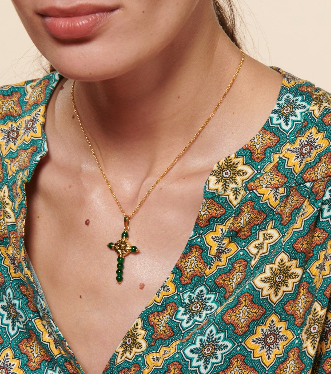 Souleiado Femme Accessoires Collier Croix Fleur D’arles Et Perles Émeraudes | Émeraudes