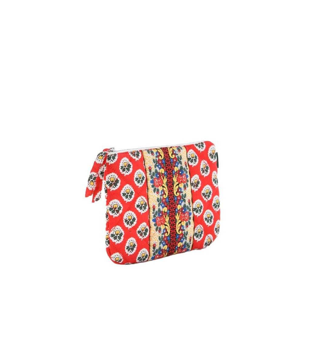 - Pochette en coton matelassé vertical imprimé « Fleurs d’Arles » coloris coquelicot