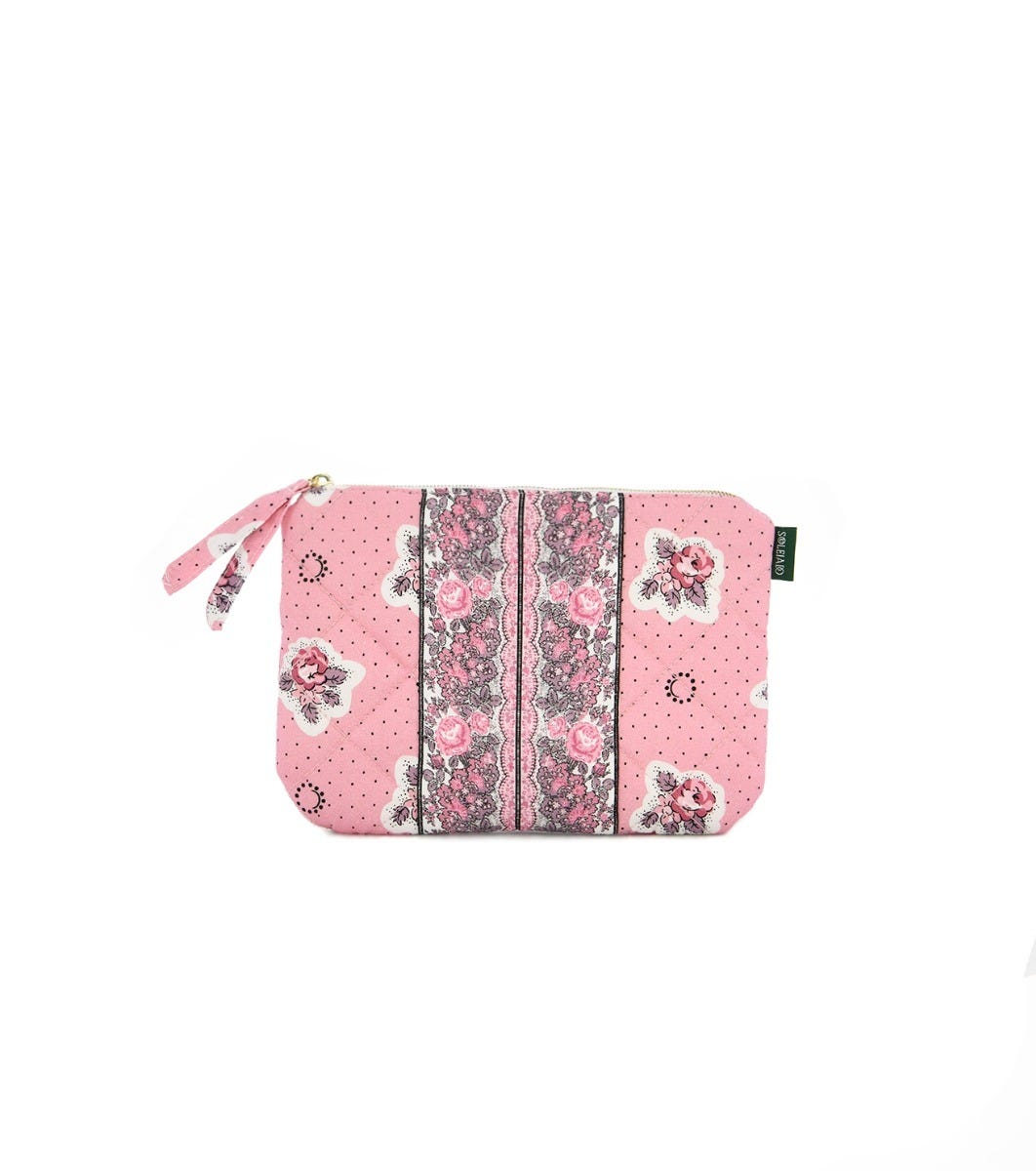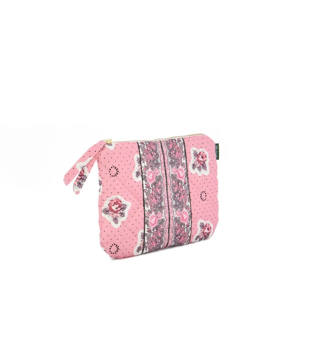 - Pochette en coton matelassé losange imprimé « Printemps » coloris rose