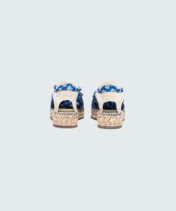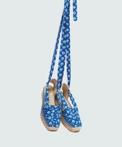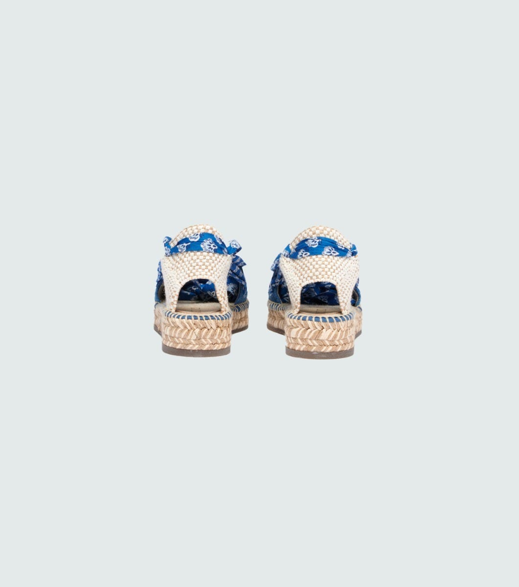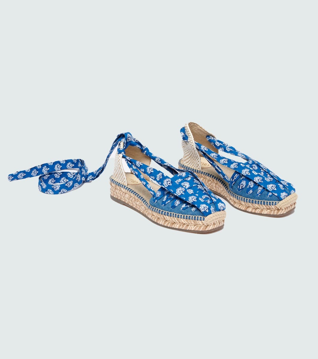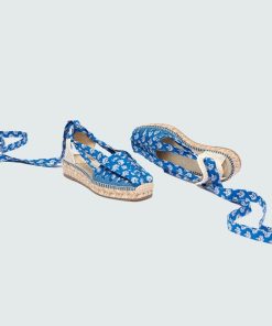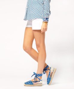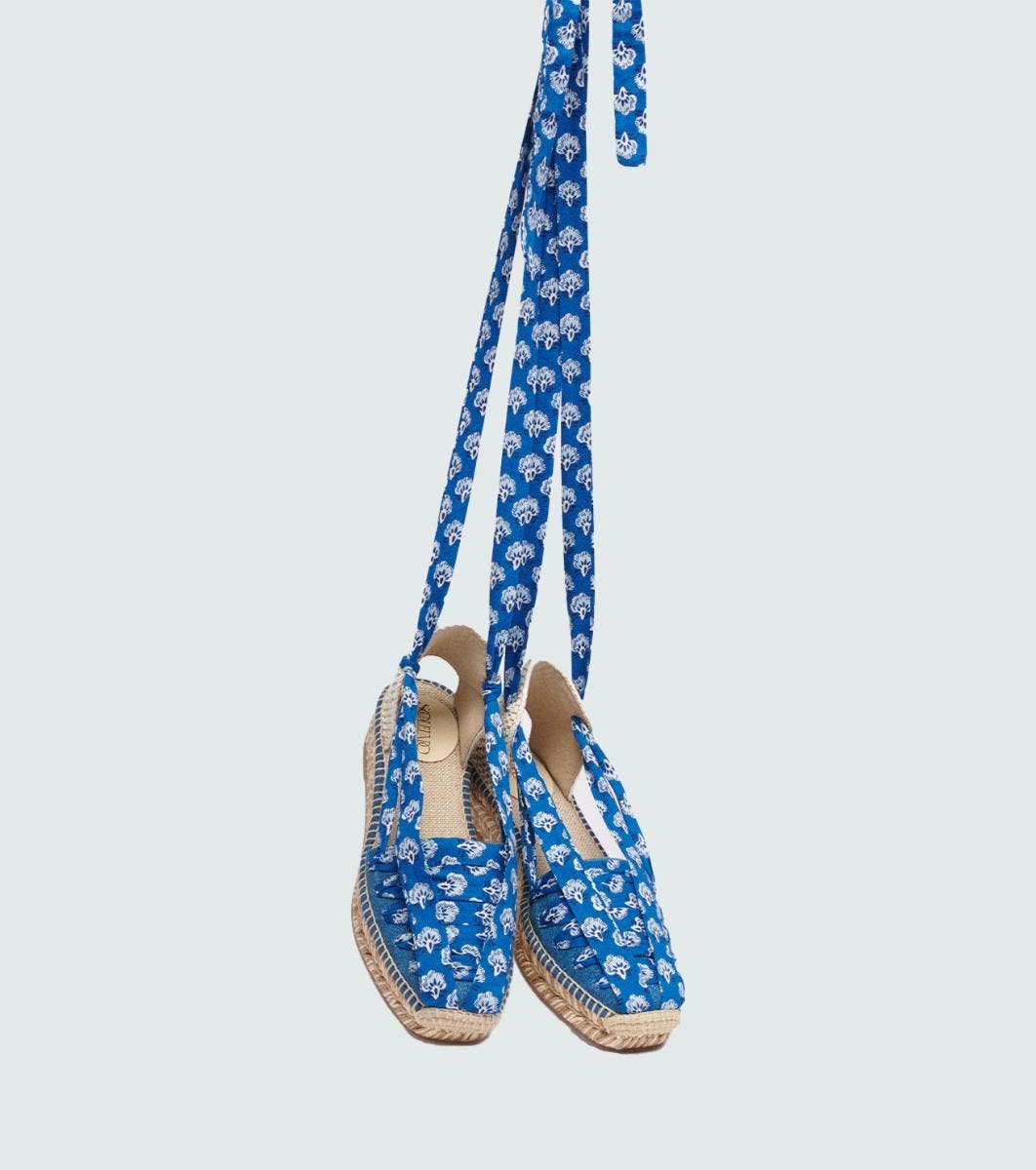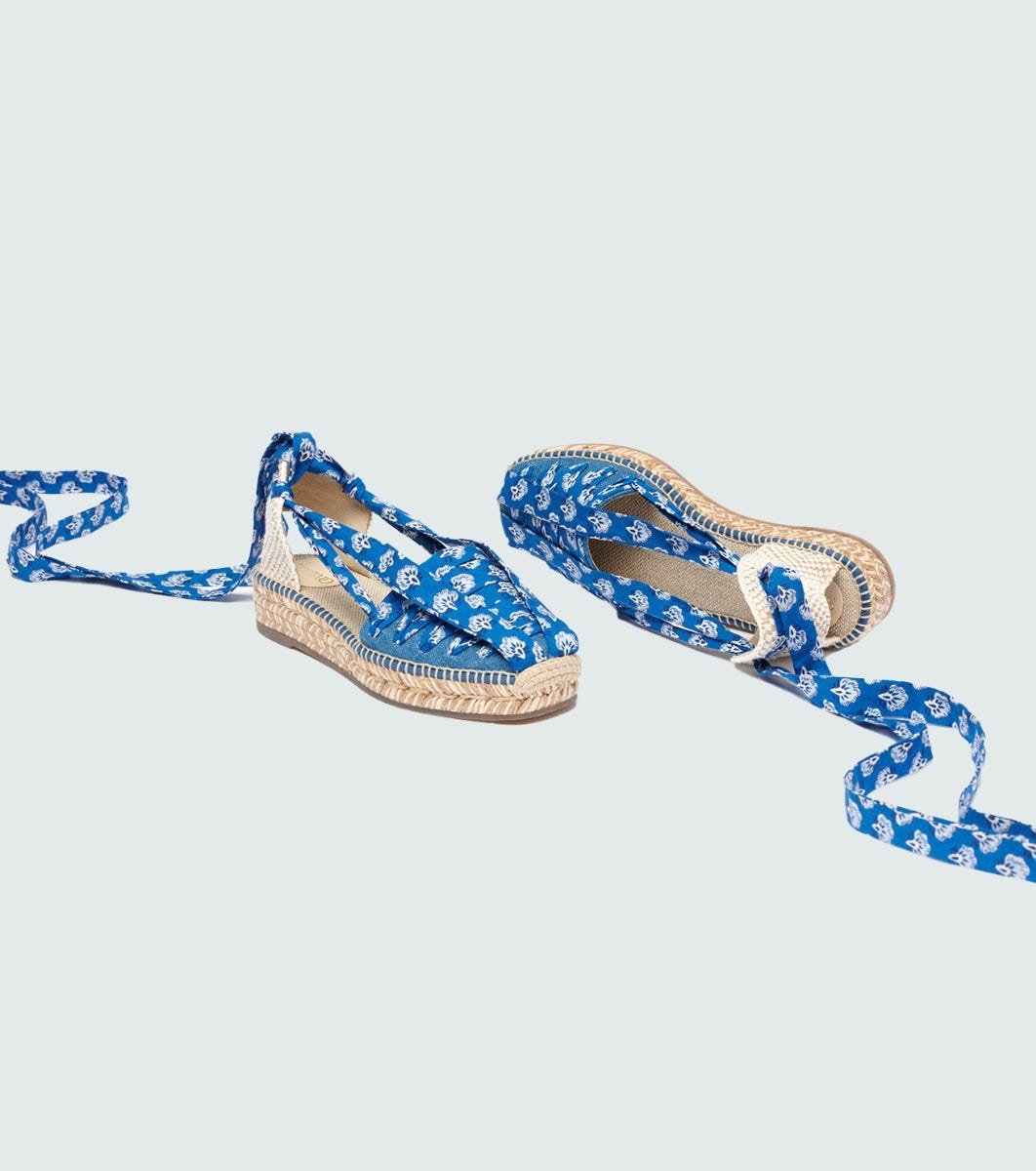 - Vanina, notre espadrille à plateforme esprit catalane se décline pour cette saison en jean agrémenté d’un ruban fin en coton imprimé à nouer autour de la cheville.