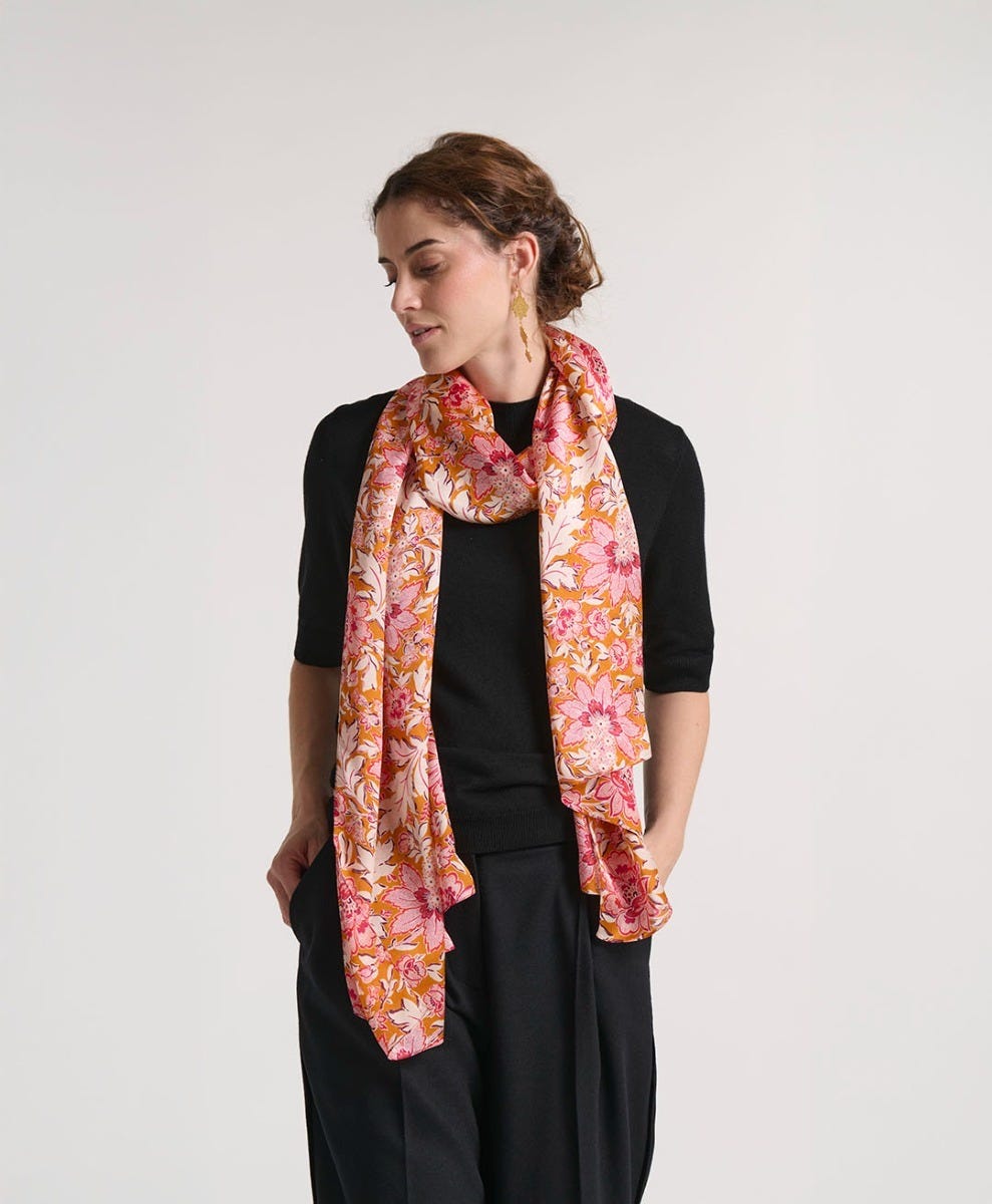Souleiado Femme Accessoires Etole En Soie Sylvéréal Orange Framboise 70x 200 Cm | Orange & Framboise