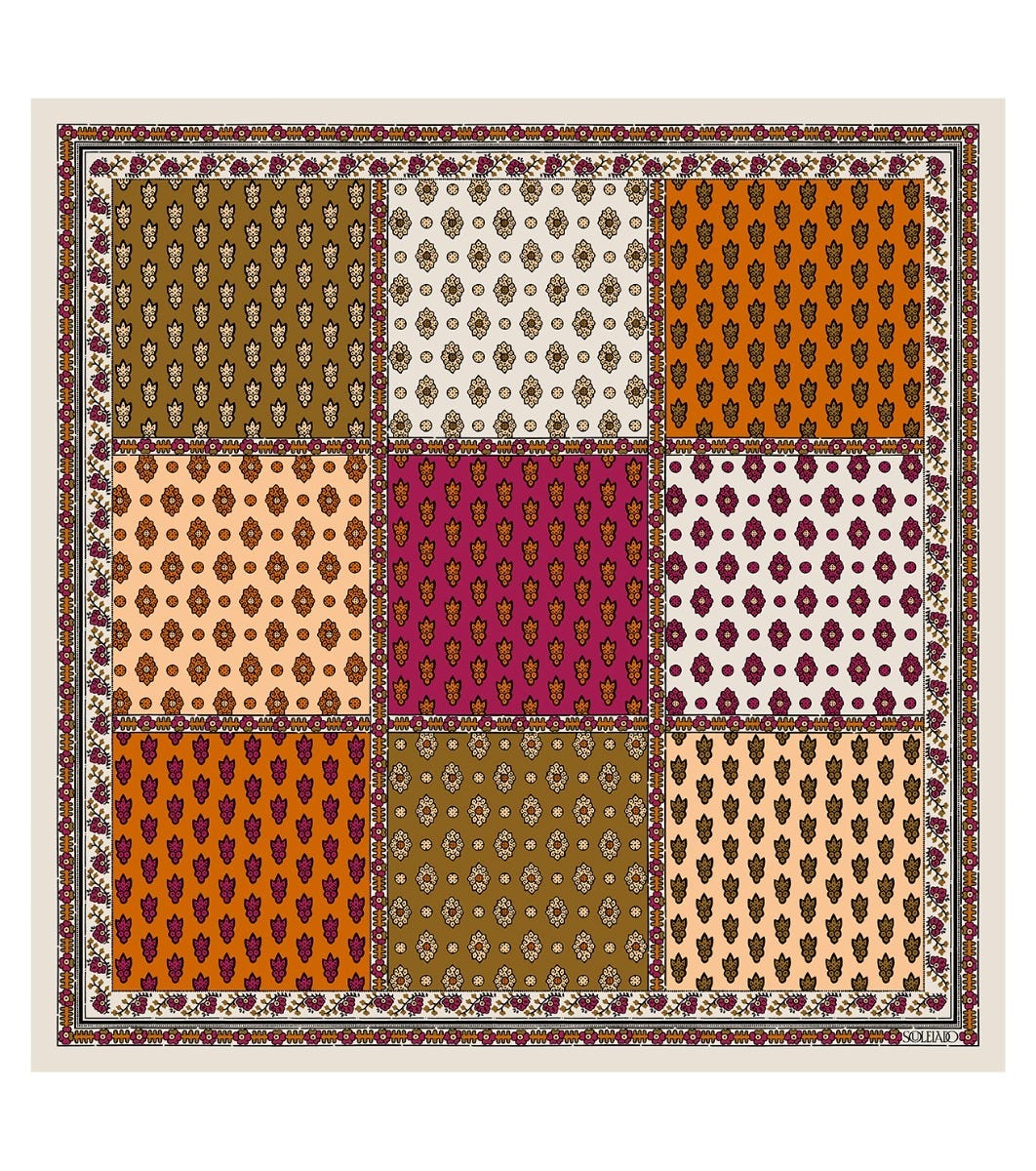 - Ce petit format (45 x 45 cm), discret par sa taille mais riche de sens, se prête à toutes les interprétations : noué à la manière d’un foulard classique, glissé dans les cheveux, enroulé au poignet ou plié en pochette. À chaque geste, il raconte un fragment du savoir-faire Souleiado, entre élégance et héritage.