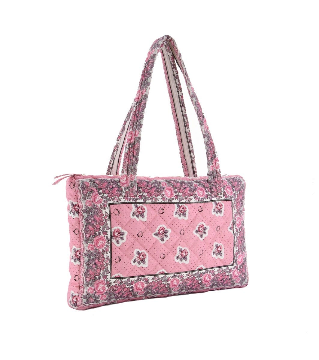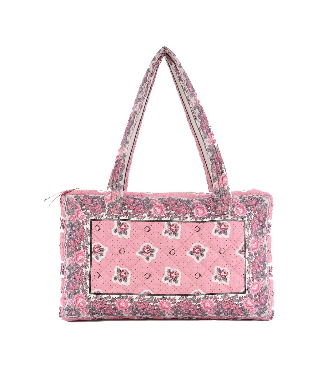 - Sac ADIANA matelassé losange en coton imprimé Printemps coloris rose