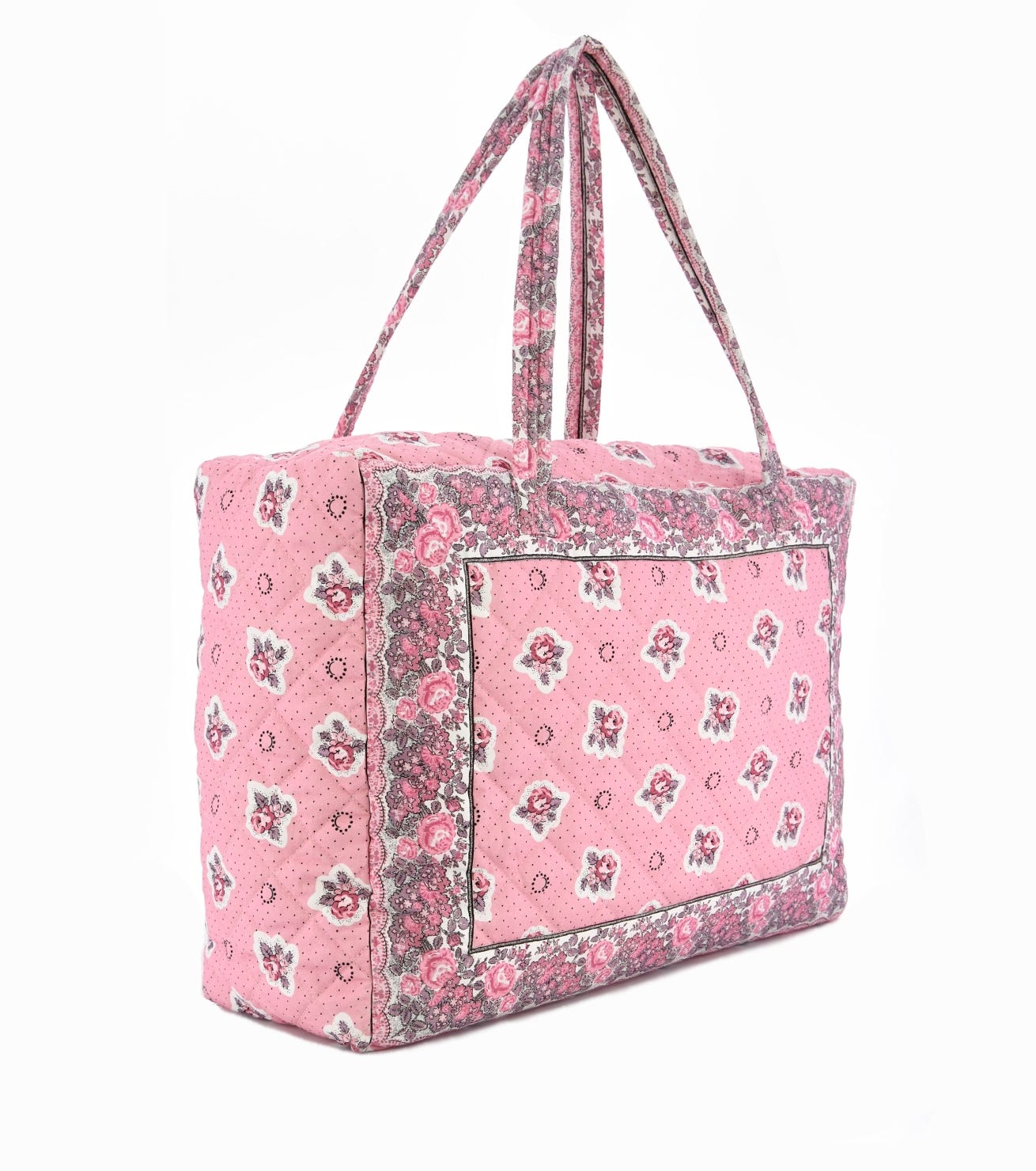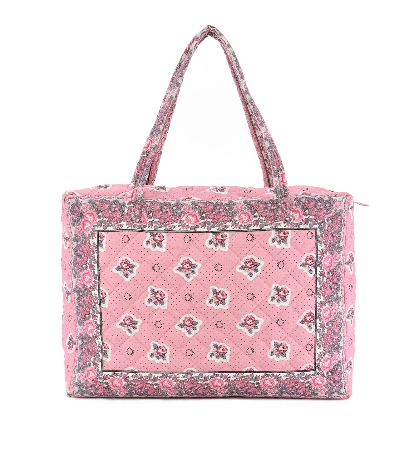 - Sac ADIANA matelassé losange en coton imprimé Printemps coloris rose
