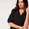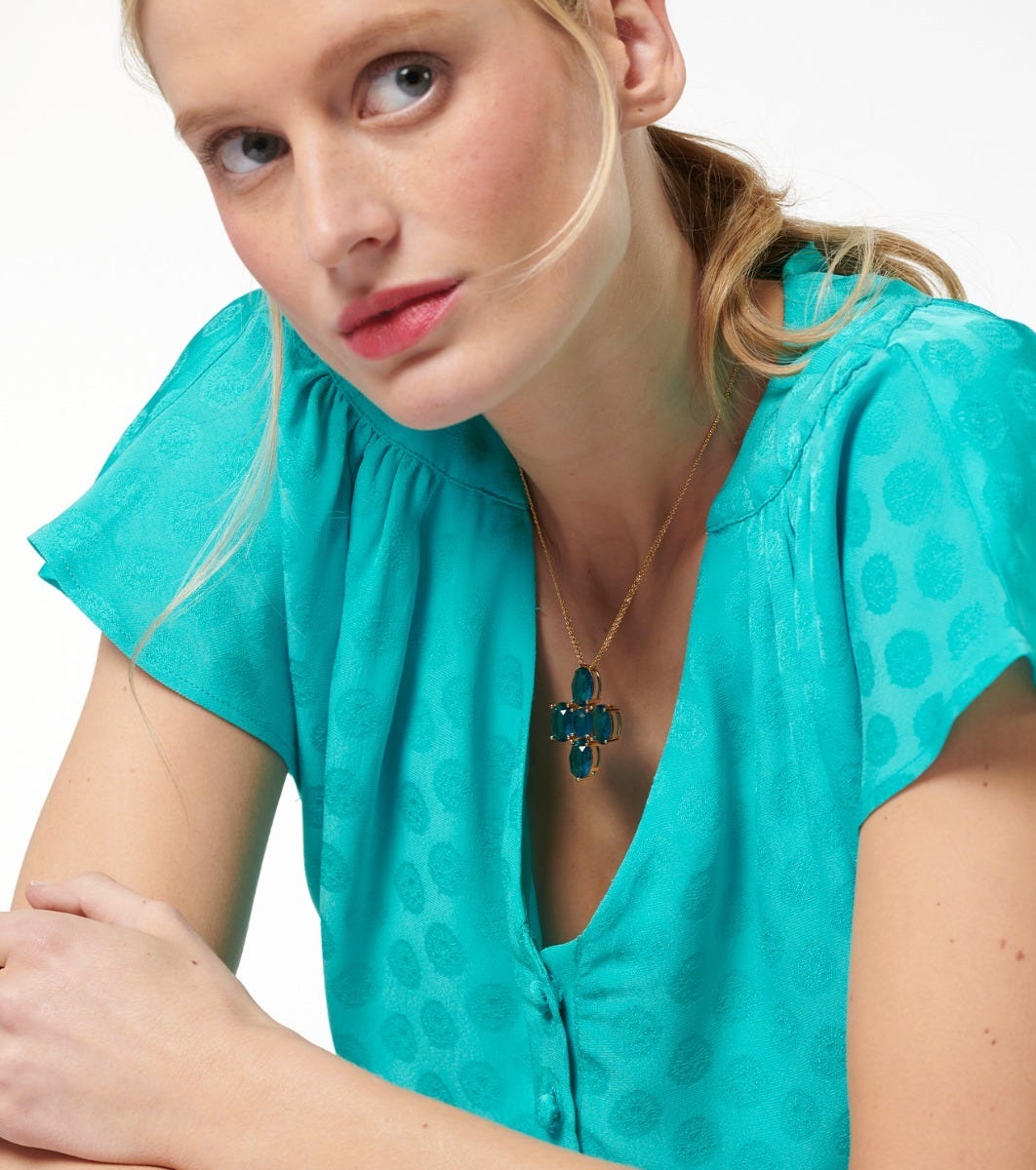 - Encolure en « »V » » avec patte de boutonnage milieu devant fermée par 3 boutons recouvert