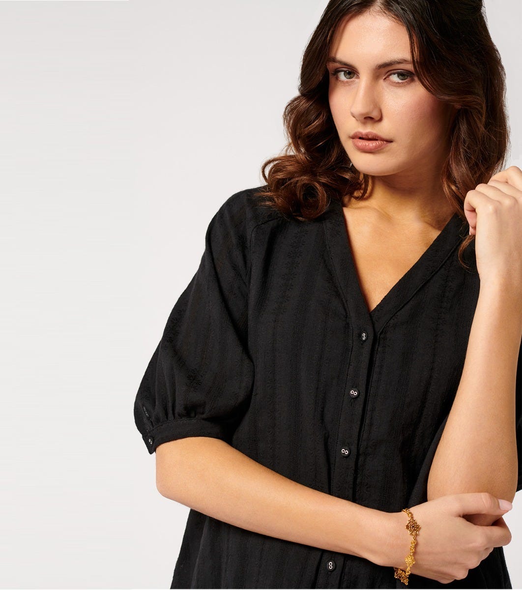 - Blouse ample en coton léger. Vous apprécierez les détails de broderies qui viennent donner à cette blouse bohème toute sa délicatesse.