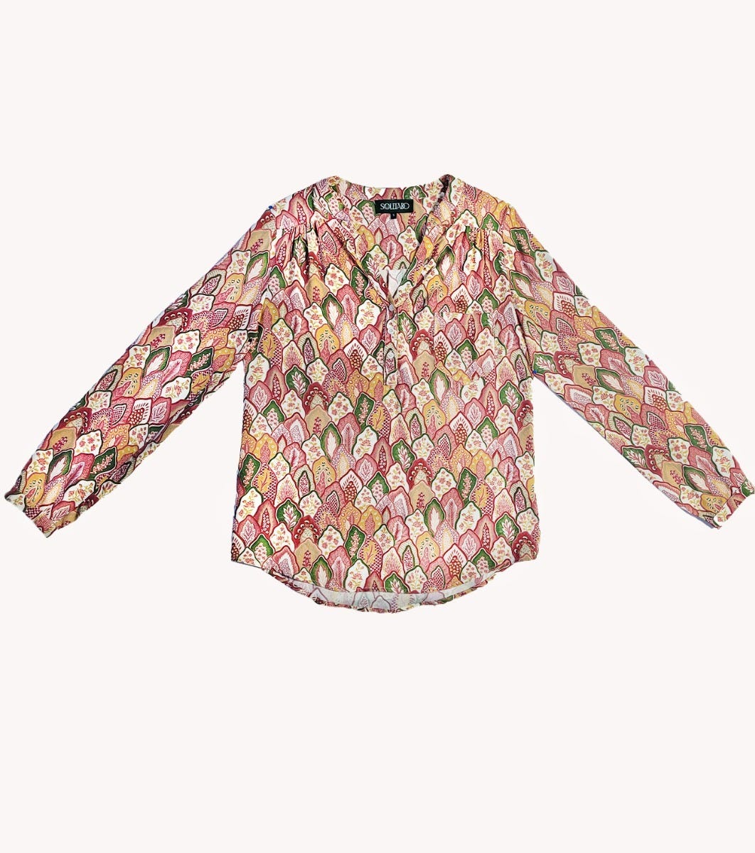 - En twill viscose imprimé avec notre motif iconique « La Plume » coloris rouge corail