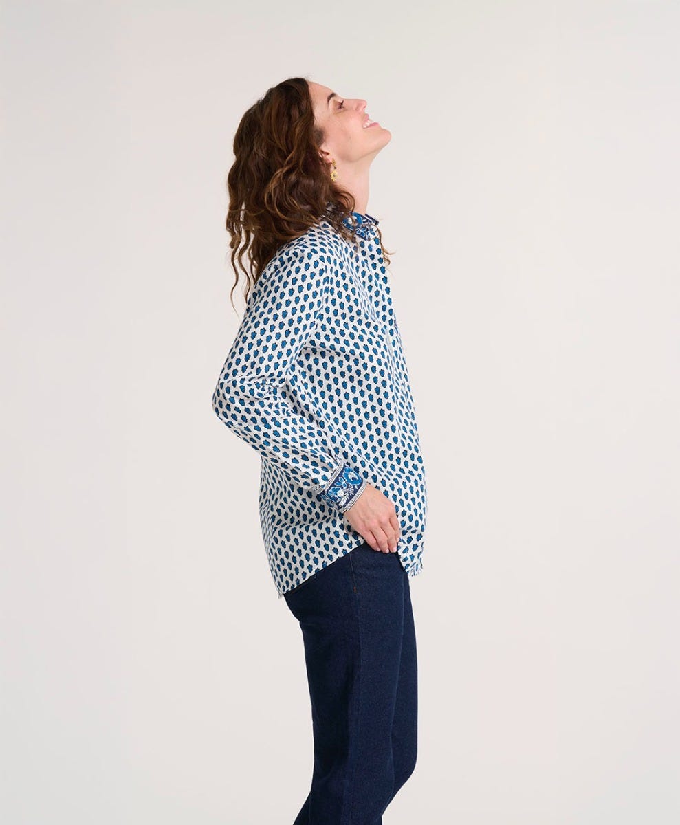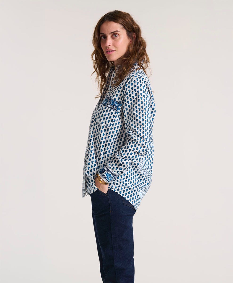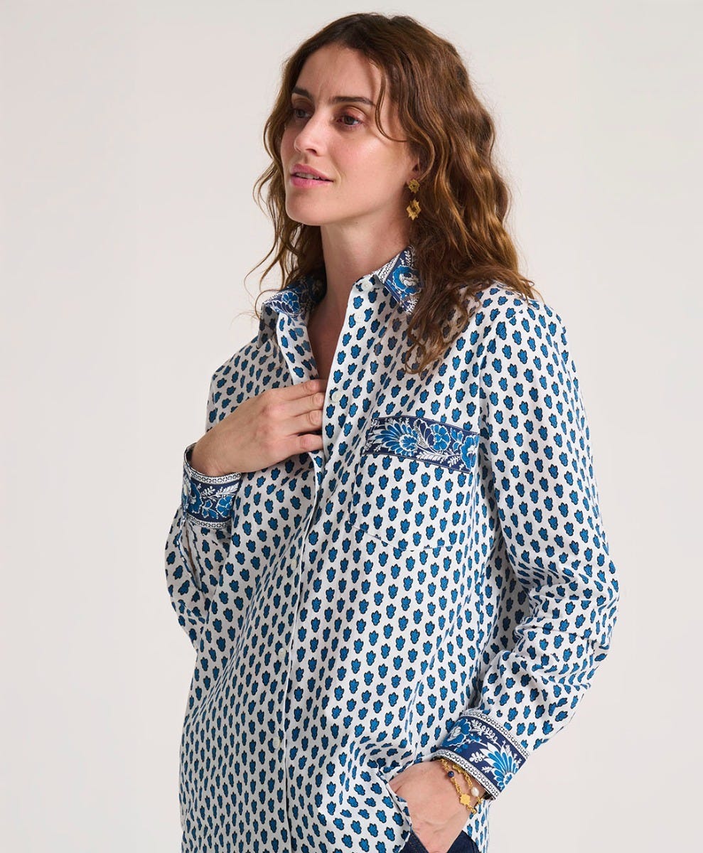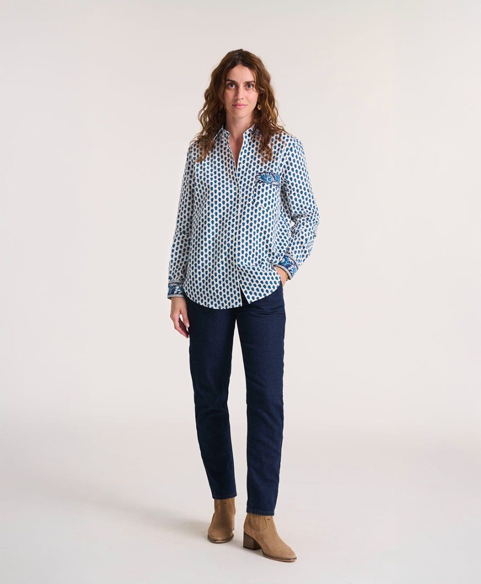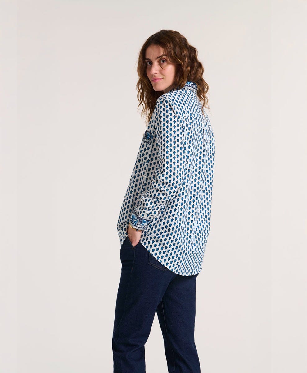 Souleiado Femme Men’s Chemise Diega Large Mouche Blanc Bleu | Blanc