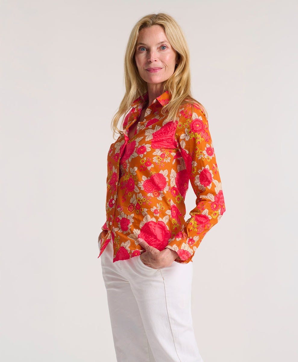 - Elina, notre chemise au féminine à la coupe ajustée qui épouse délicatement la silhouette, sublimée par des pinces poitrine et un cintrage subtil au dos.