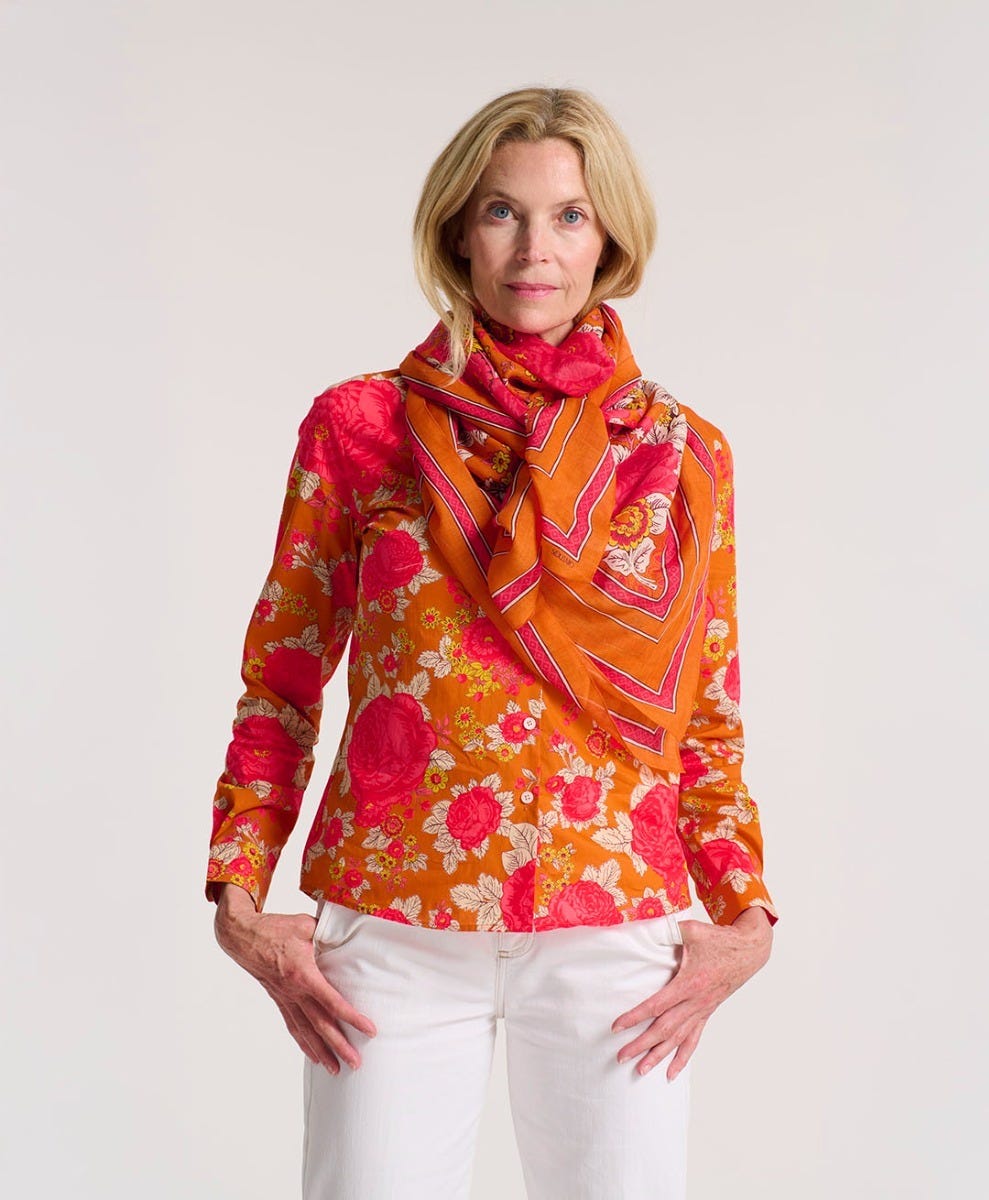 - En popeline 100% coton, imprimée avec notre motif iconique « Roulotte » coloris orange corail