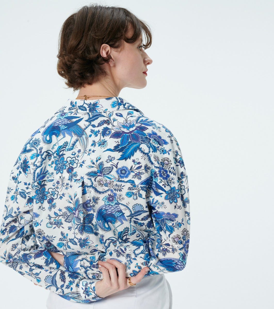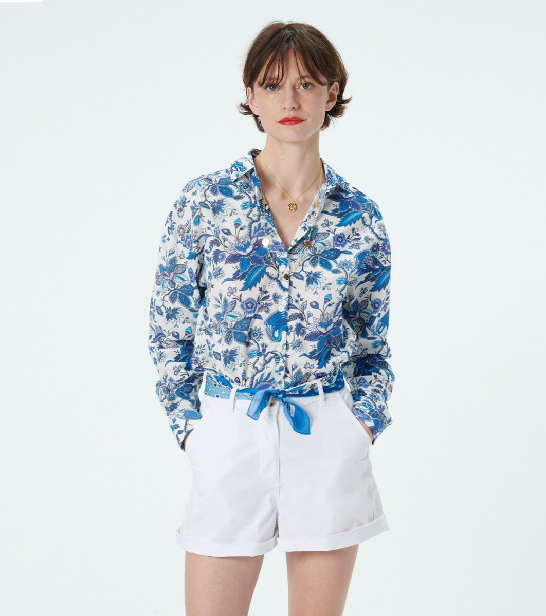 - Manches longues resserrées par un poignet fermé avec un bouton de nacre gravé