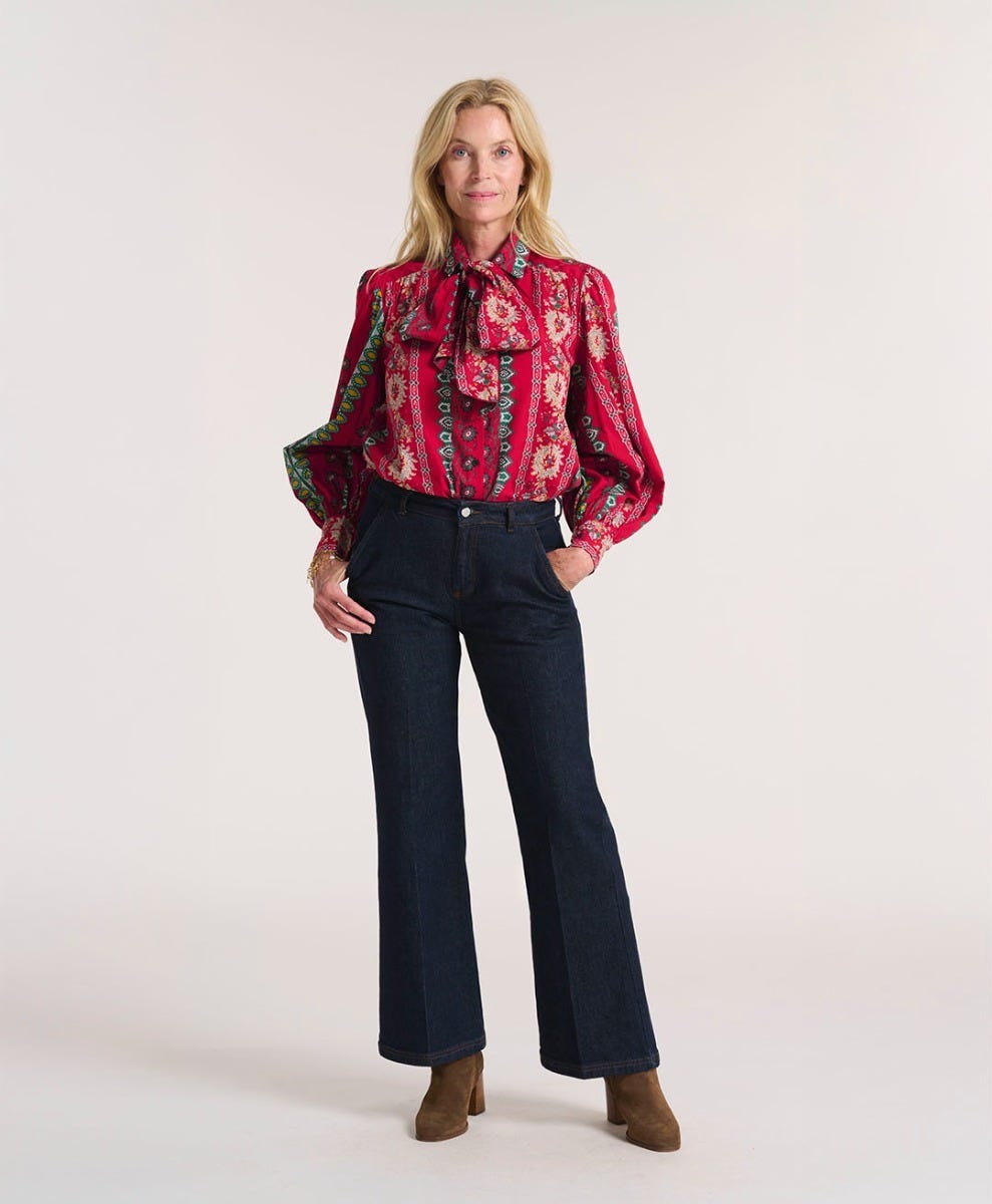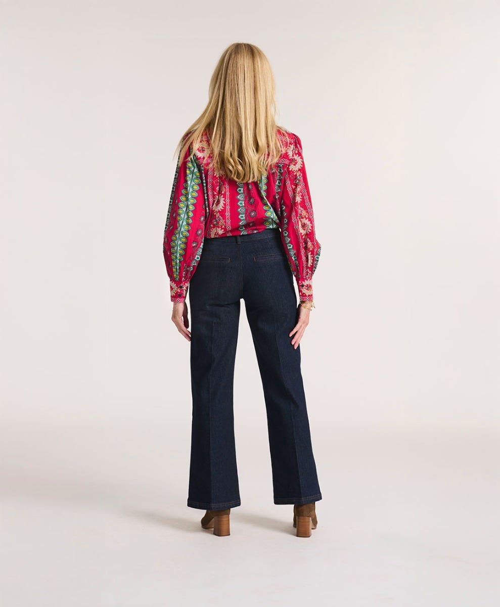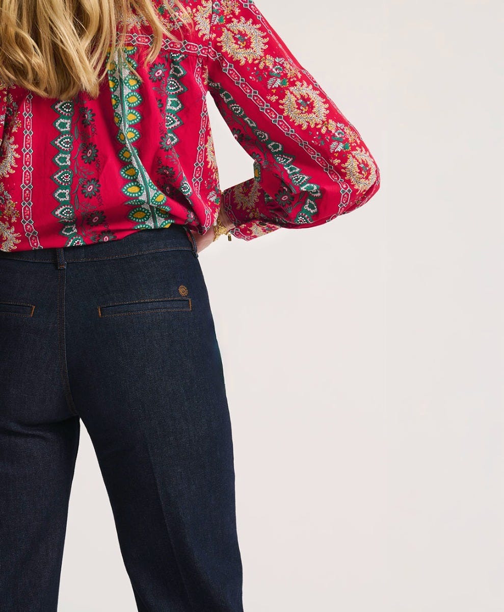 - Le jean GABIAN est un modèle en denim brut avec une coupe droite et une jambe large. Son détail de pli marqué devant, sa taille haute et ses jolies surpiqûres lui apporte toute sa féminité !