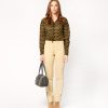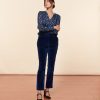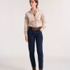 - Pantalon droit ajusté en toile coton élasthane à l’effet peau de pêche