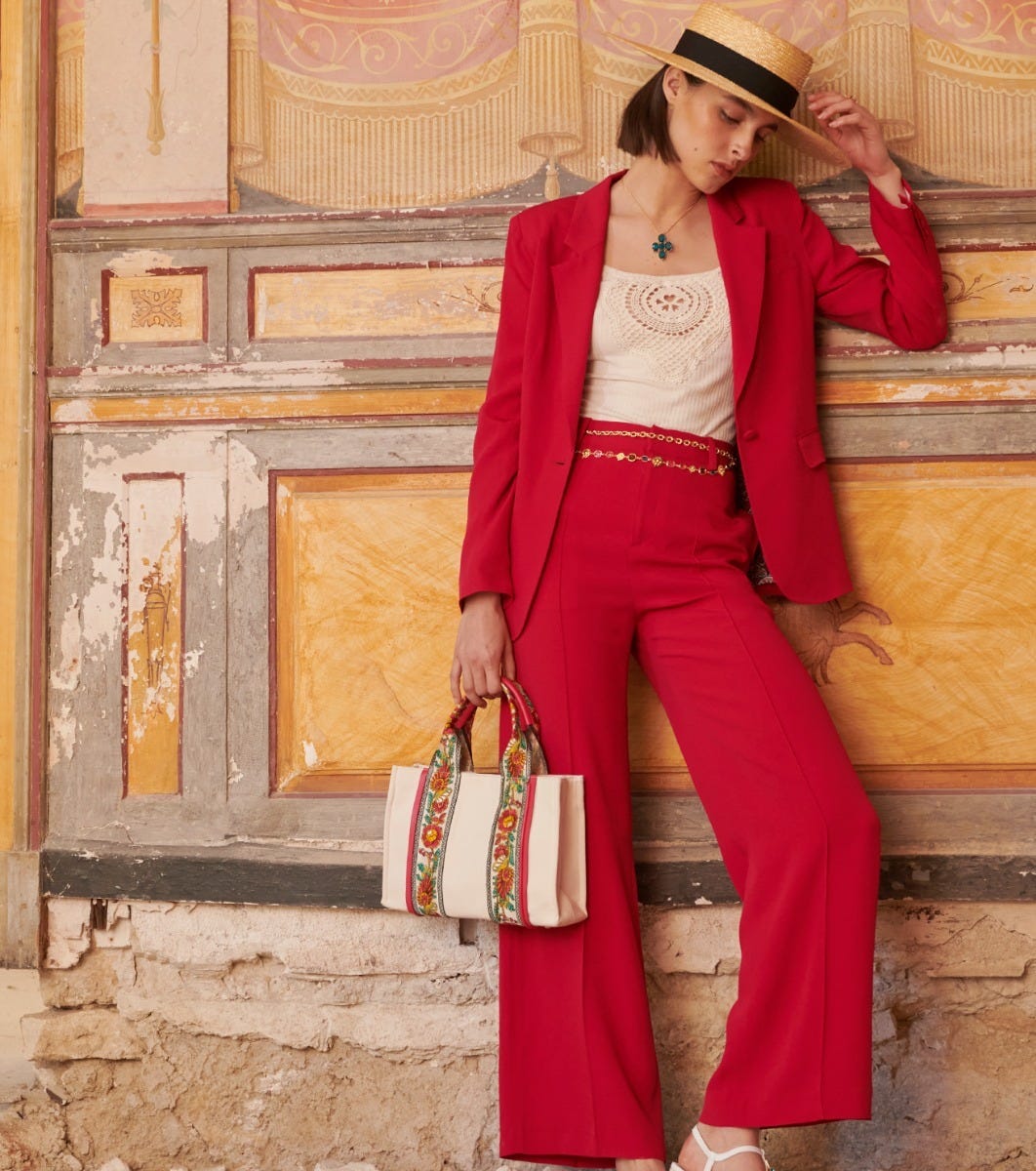- Pantalon ample et fluide en crêpe viscose envers satin