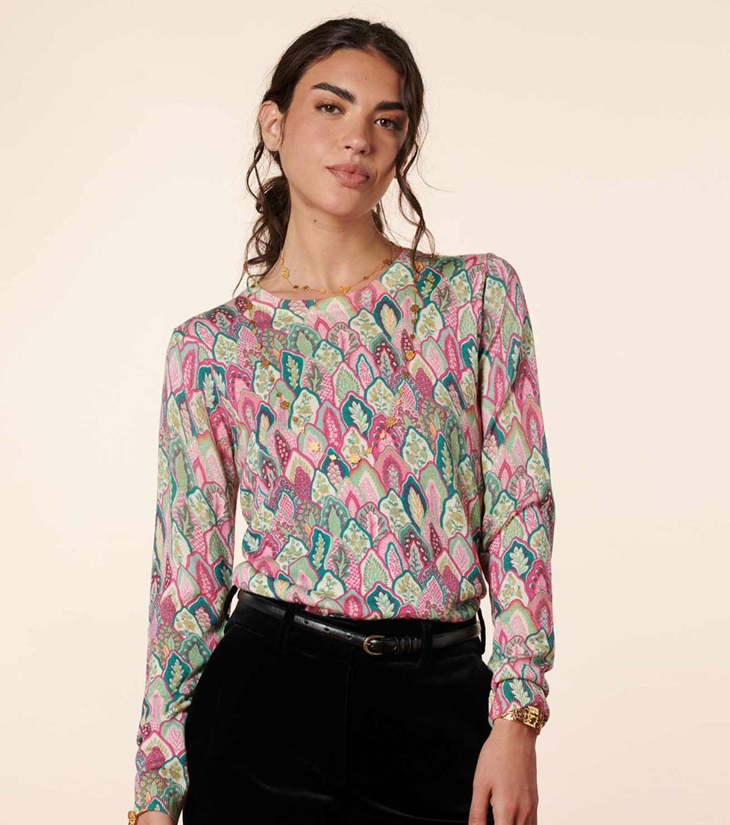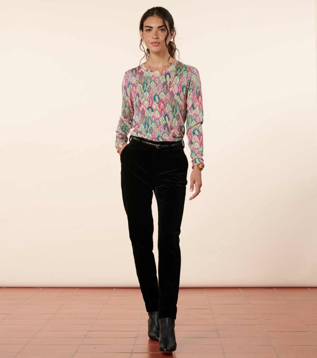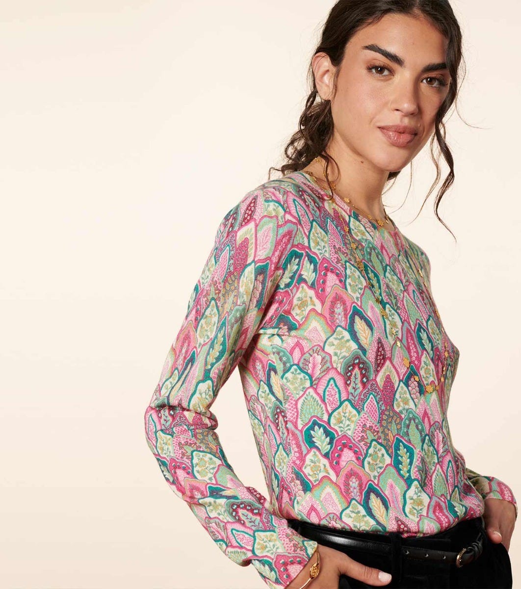 Souleiado Femme Men’s Pull Perla Plume Émeraude Rose | Emeraude & Rose