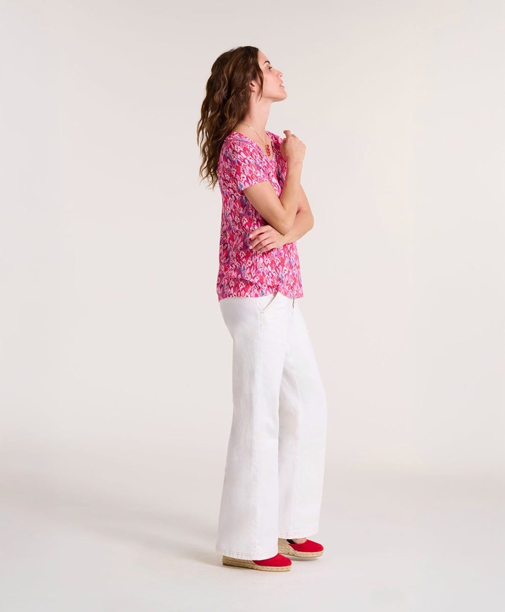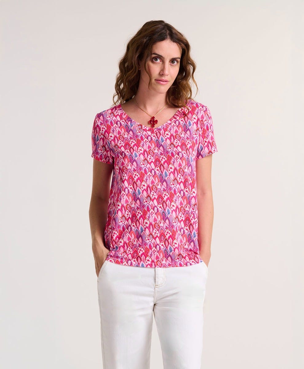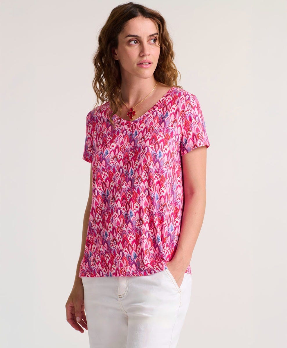 Souleiado Femme Men’s T-shirt Polly Petite Plume Fuchsia Bleu | Fuchsia Et Bleu