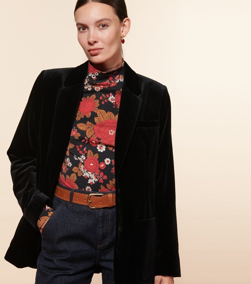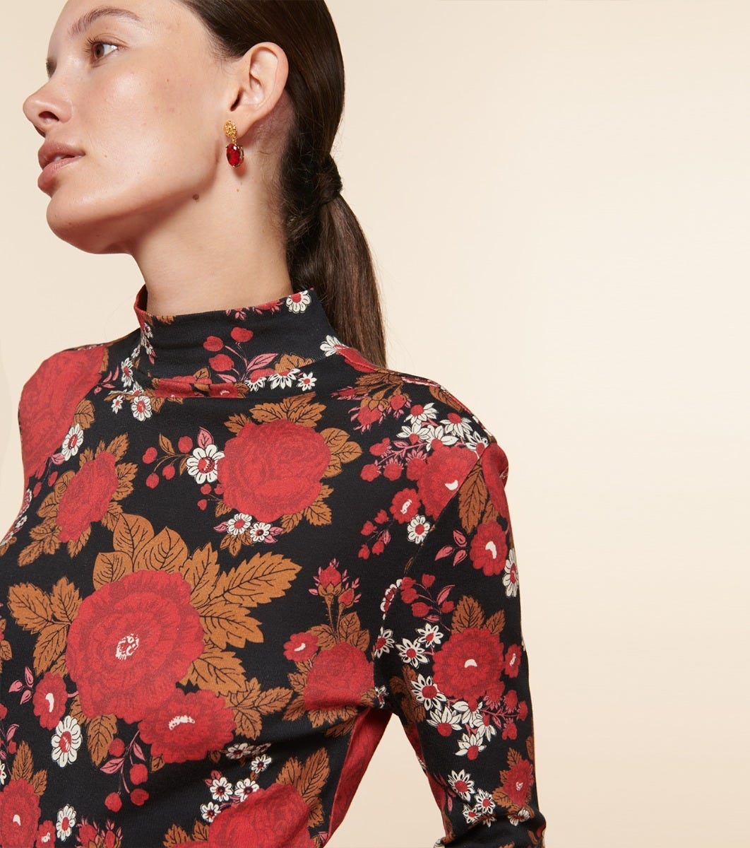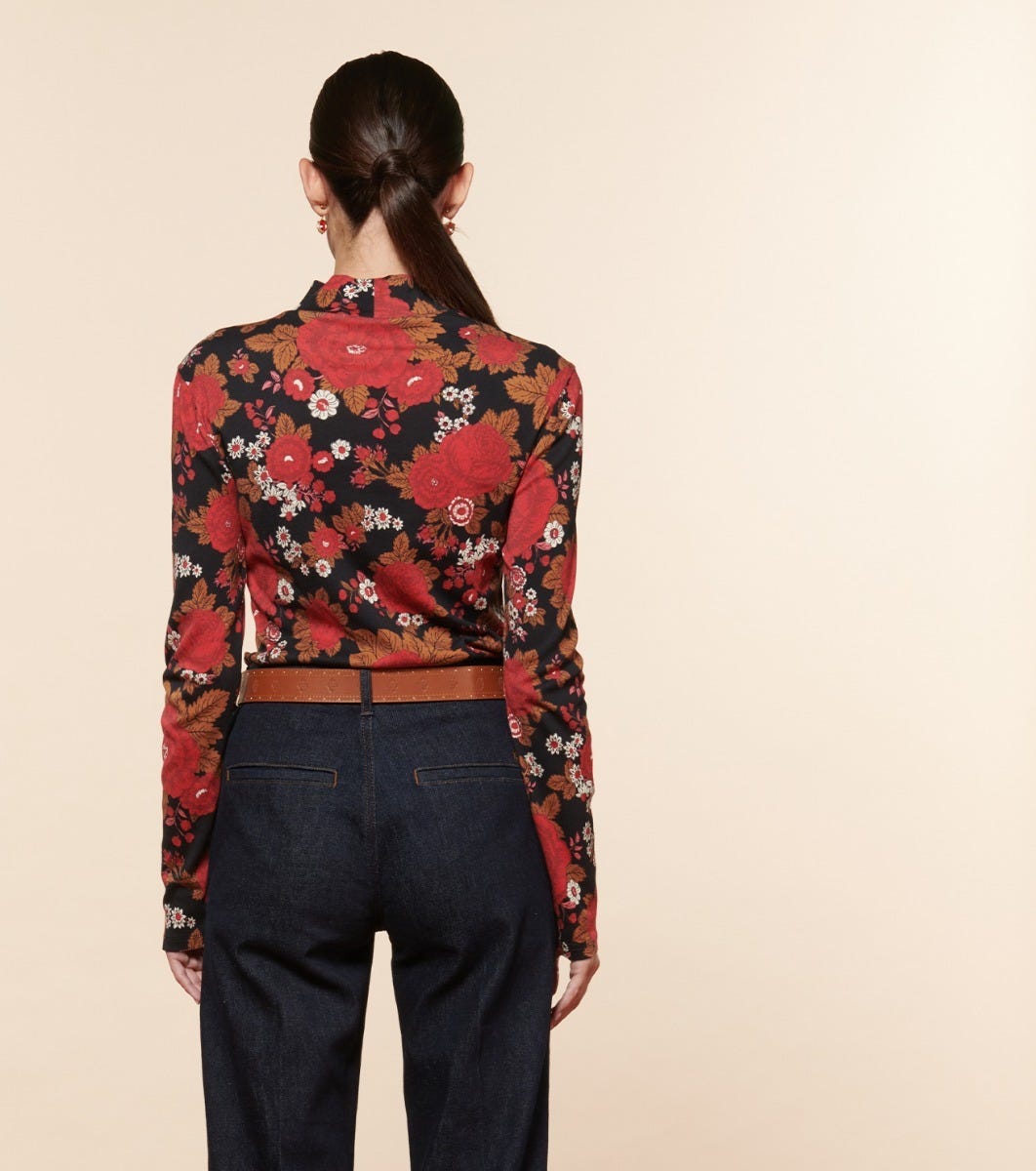 - En jersey de coton à fines côtes, imprimé avec notre motif « Roulotte » coloris noir rouge