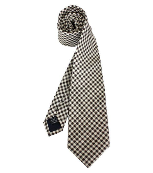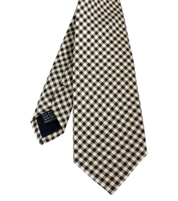 - Cravate en soie imprimé « Le Marquis » damier beige et marron