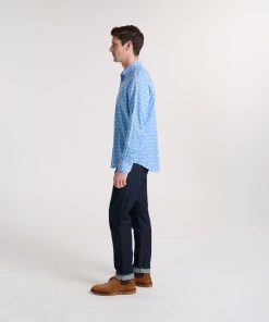 - Alphonse, notre chemise à la coupe ajustée et au col français. Plus proche du corps et légèrement cintrée à la taille, grâce à deux pinces dos, pour un porté qui dessine la silhouette. Un col court, légèrement évasé et renforcé, facile à porter.