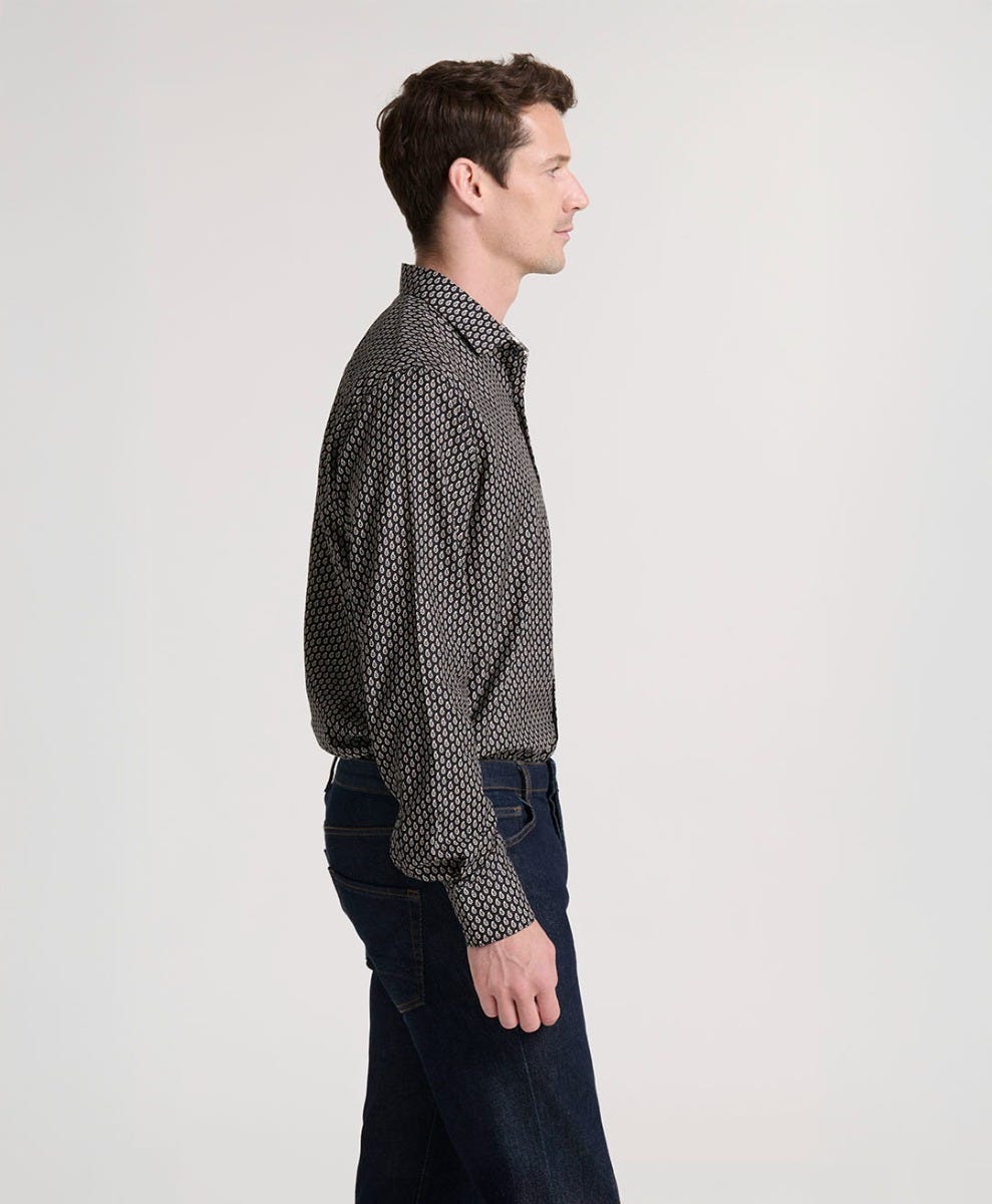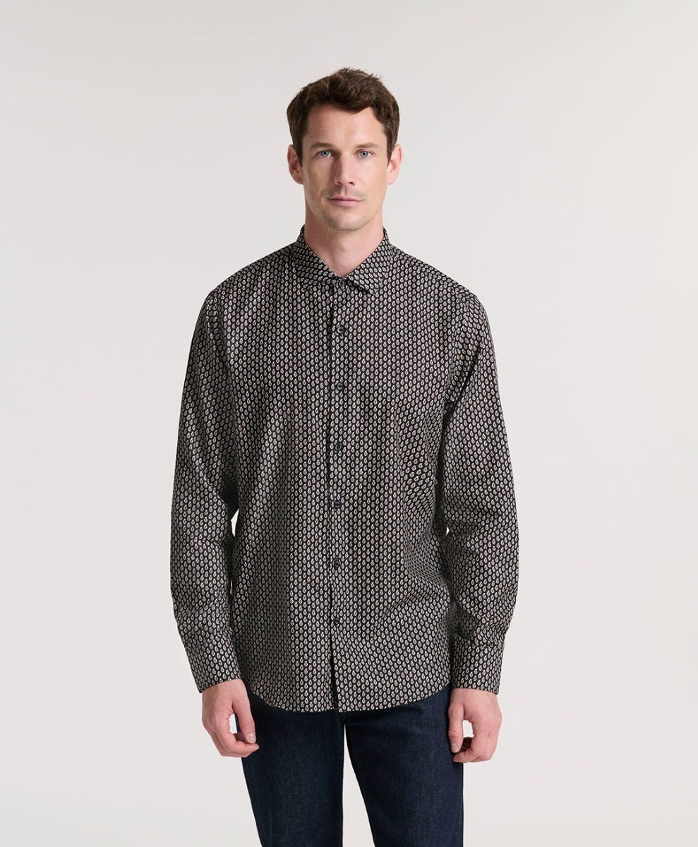 - En satin de coton, imprimé avec notre motif « Petit Cachemire » coloris noir écru