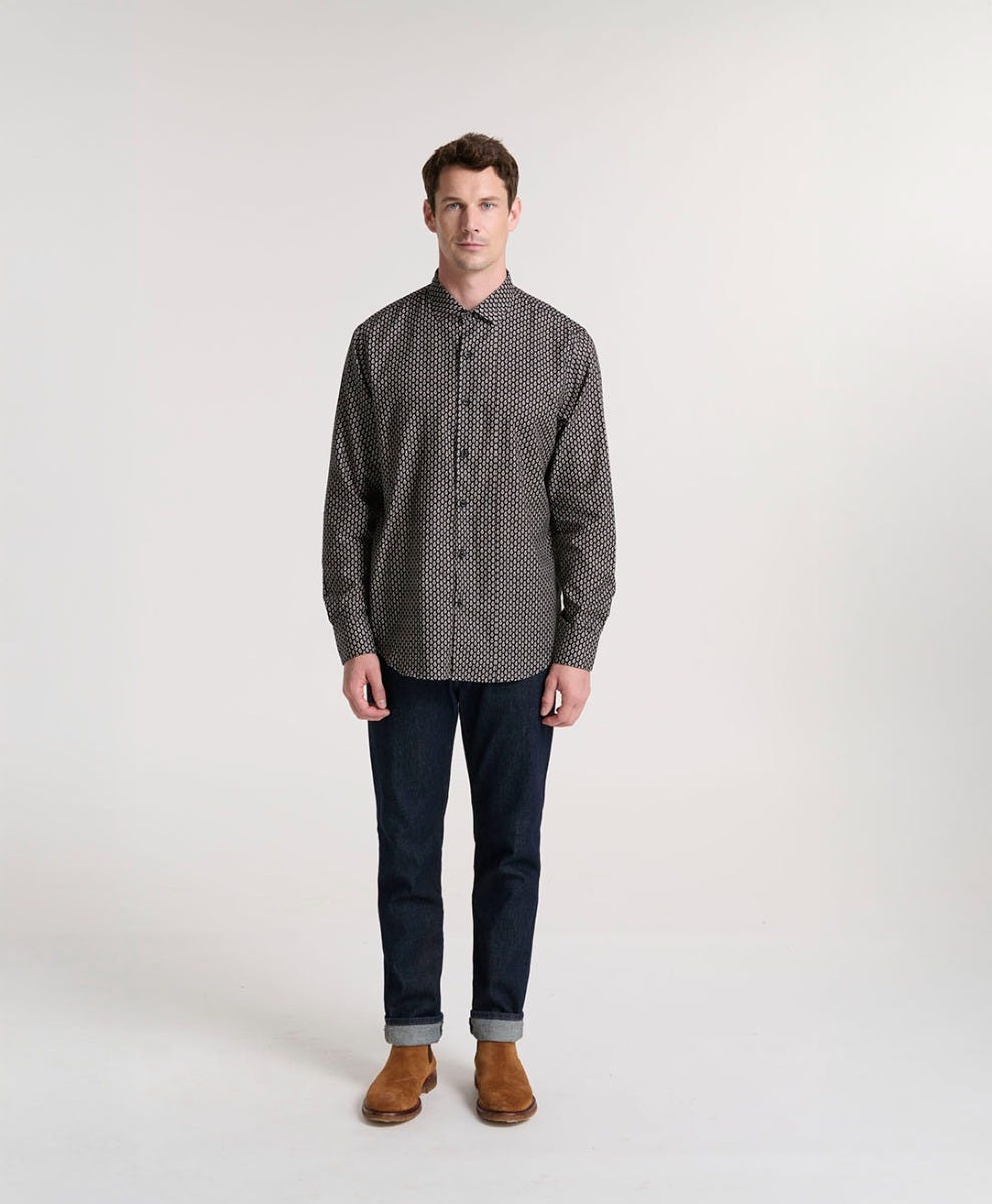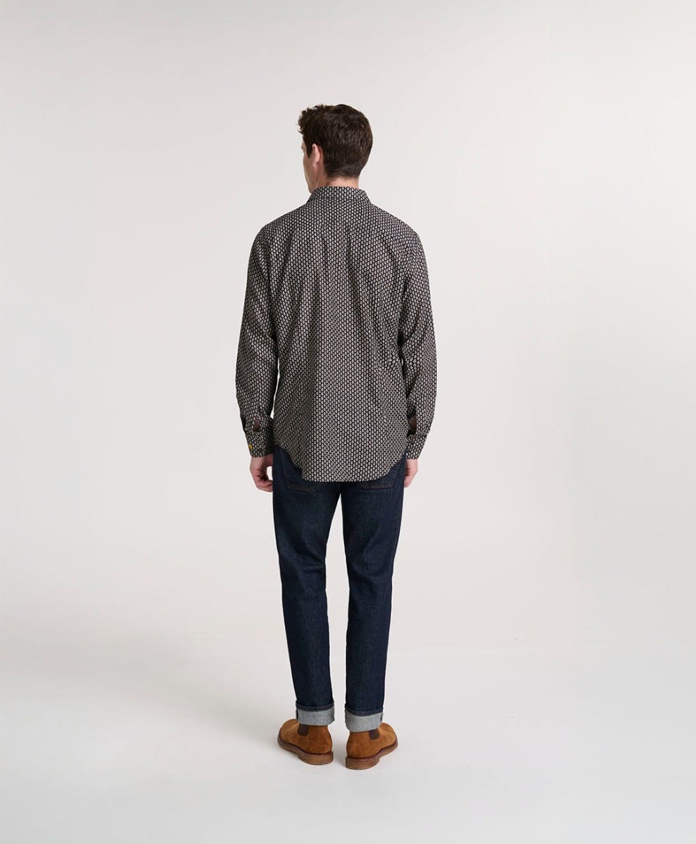 - Alphonse, notre chemise à la coupe ajustée et au col français. Plus proche du corps et légèrement cintrée à la taille, grâce à deux pinces dos, pour un porté qui dessine la silhouette. Un col court, légèrement évasé et renforcé, facile à porter.
