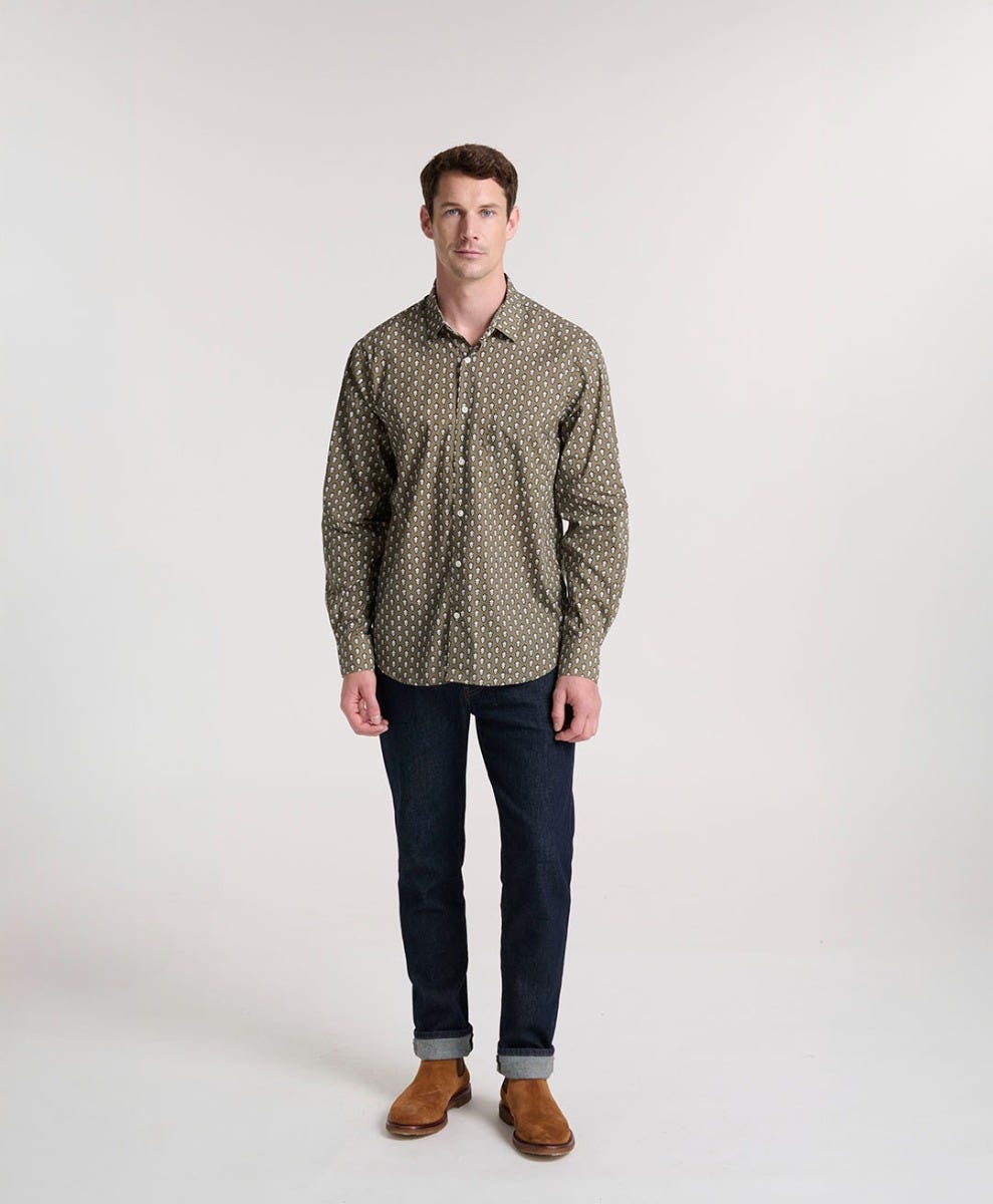 Souleiado Homme Men’s Chemise Frederi Droite Mouche Kaki | Kaki