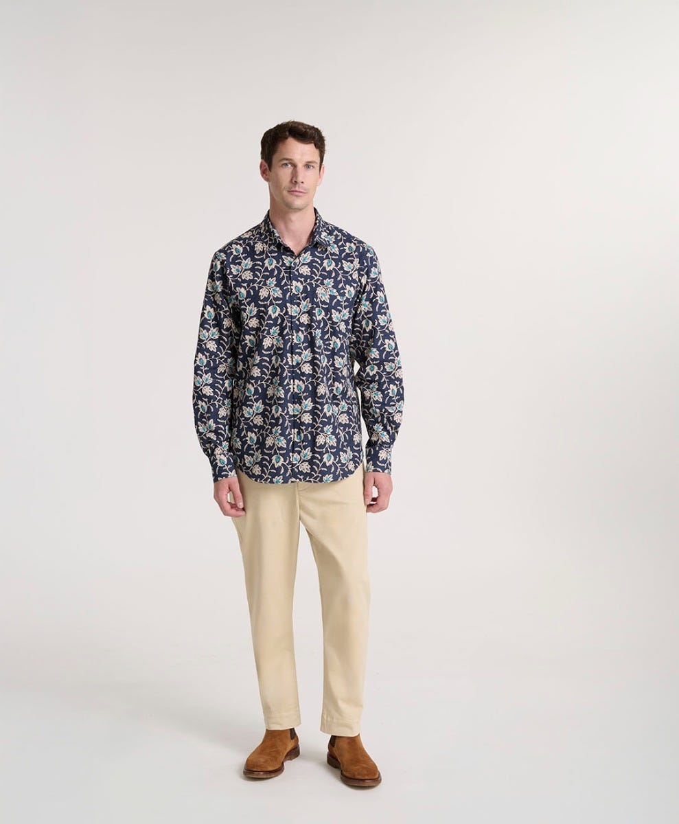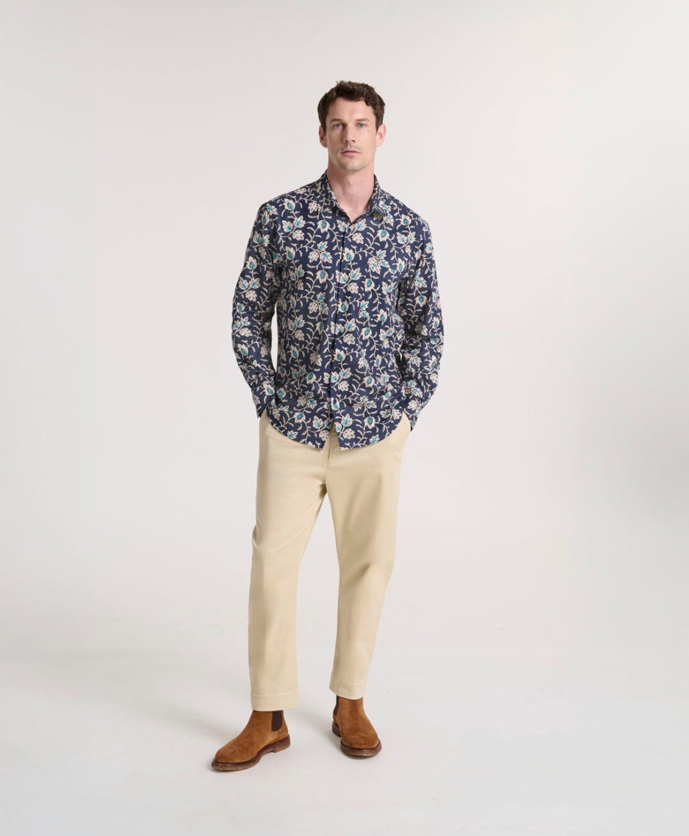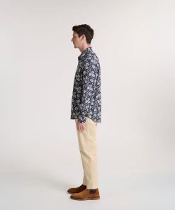Souleiado Homme Men’s Chemise Frederi Droite Ombrages Bleu Écru | Bleu Et Écru