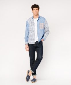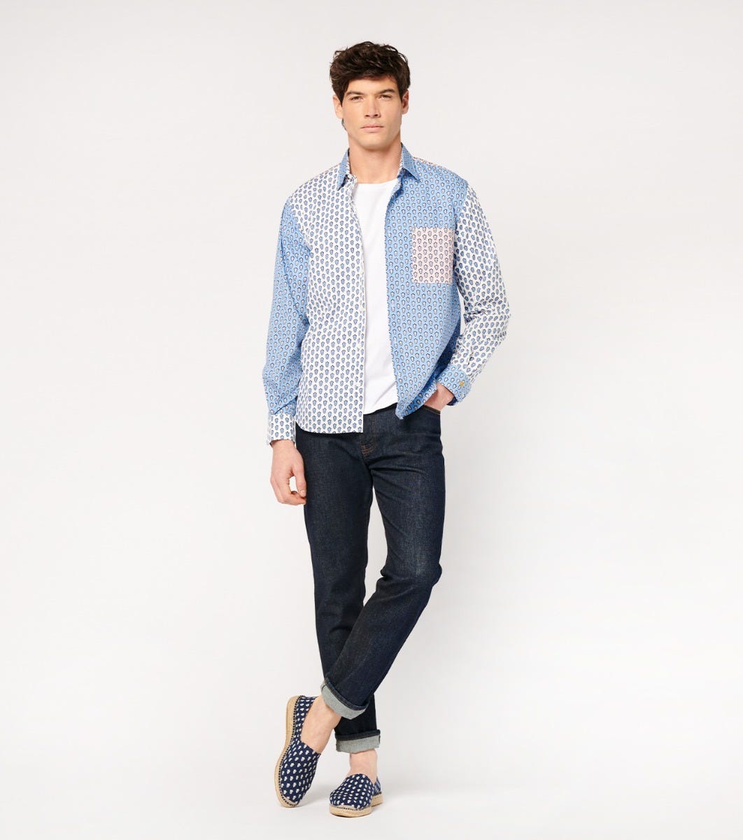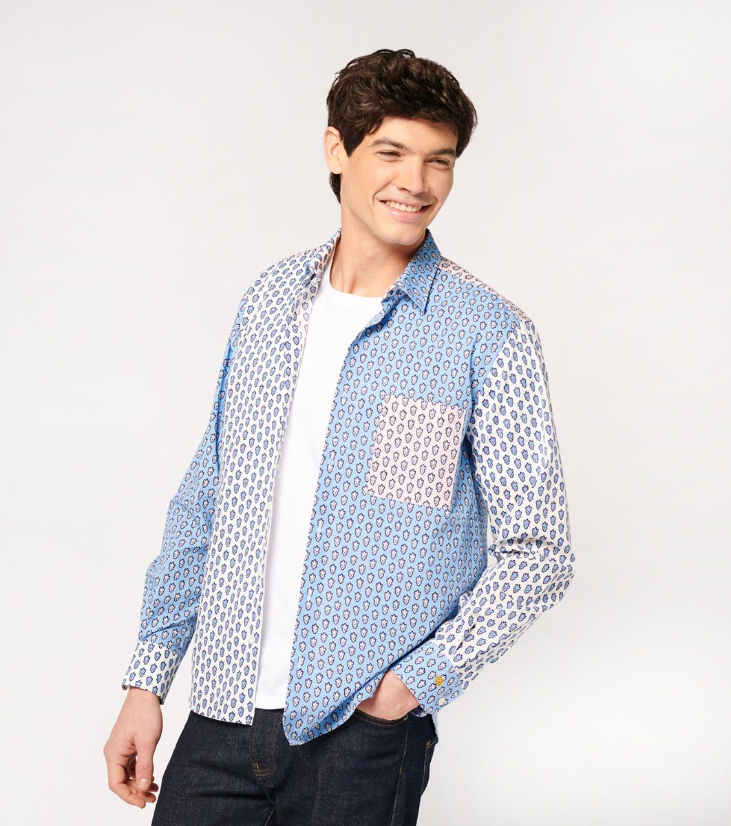 - Frédéri, notre chemise classique à la coupe droite et au col français avec une poche plaquée côté coeur. Un tombé droit qui privilégie le confort et un col court, légèrement évasé et renforcé, facile à porter.
