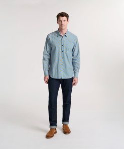 - Frédéri, notre chemise classique à la coupe droite et au col français avec une poche plaquée côté coeur. Un tombé droit qui privilégie le confort et un col court, légèrement évasé et renforcé, facile à porter.