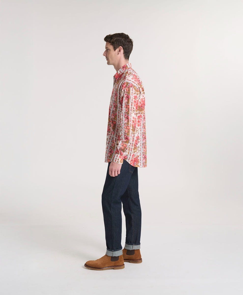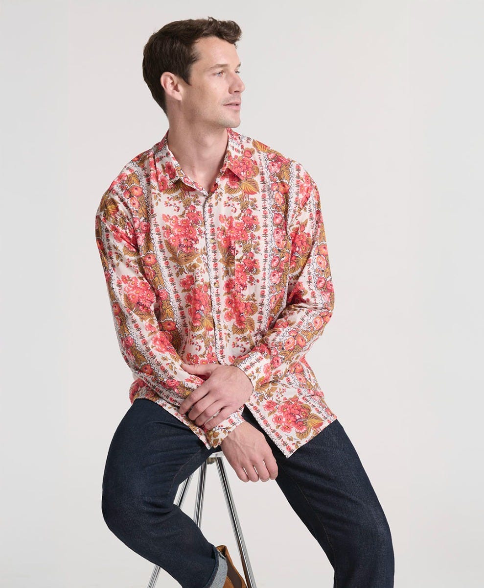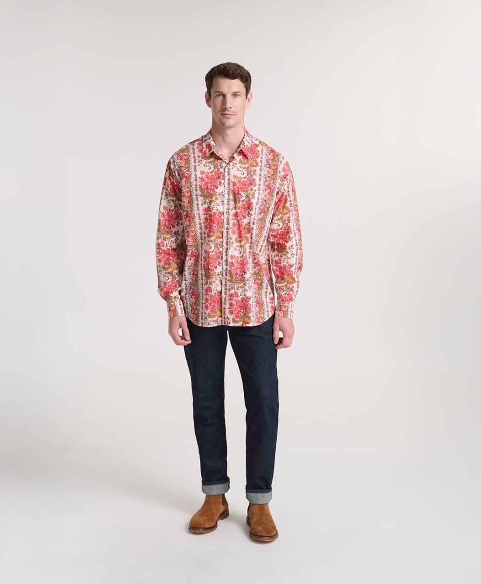 Souleiado Homme Men’s Chemise Philippe Large Mezzere Écru Corail | Écru Et Corail