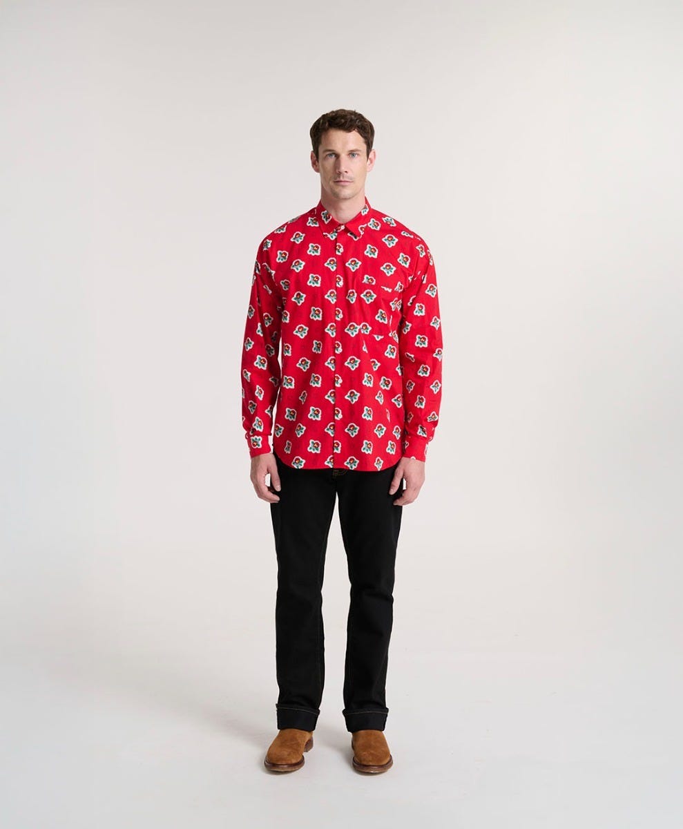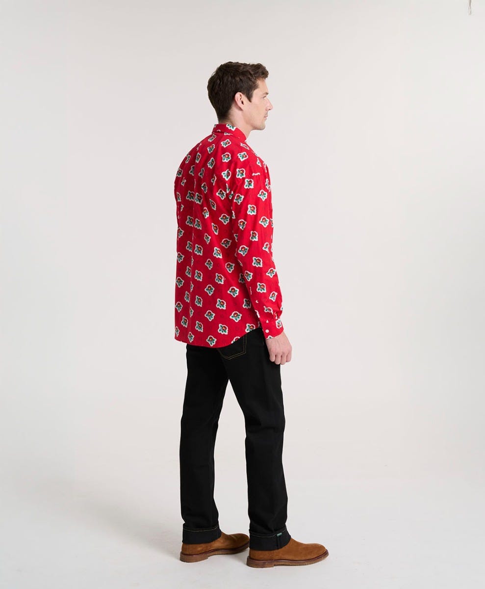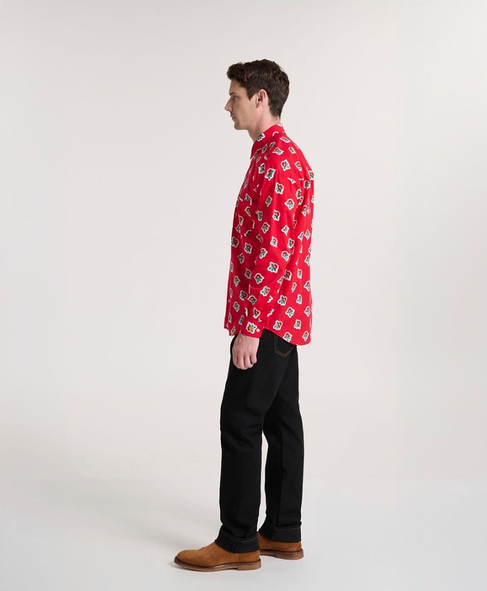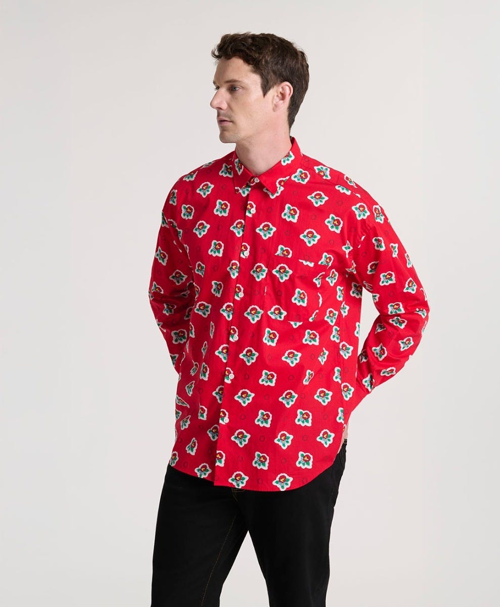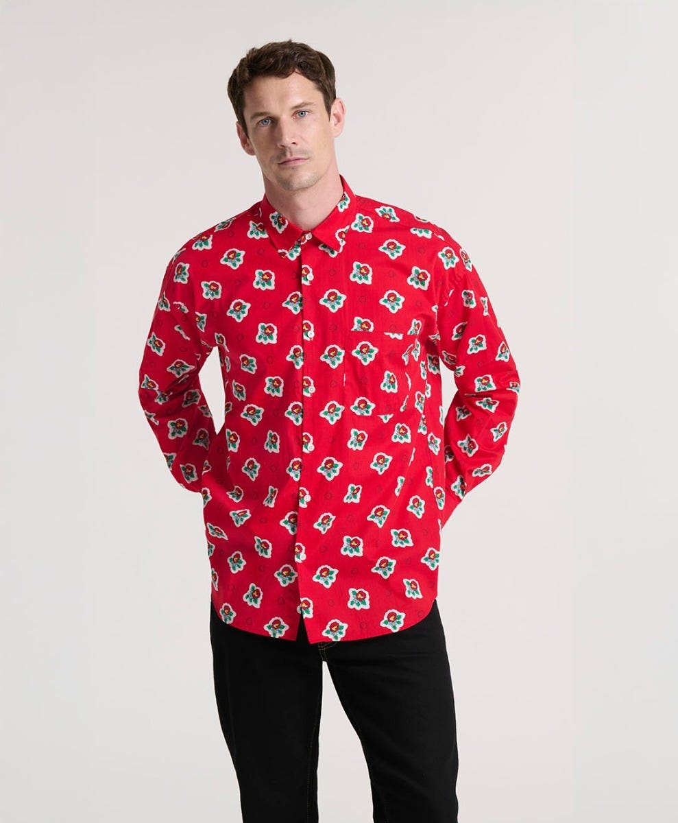 - En popeline 100% coton, imprimée avec notre motif iconique « Printemps » coloris Rouge
