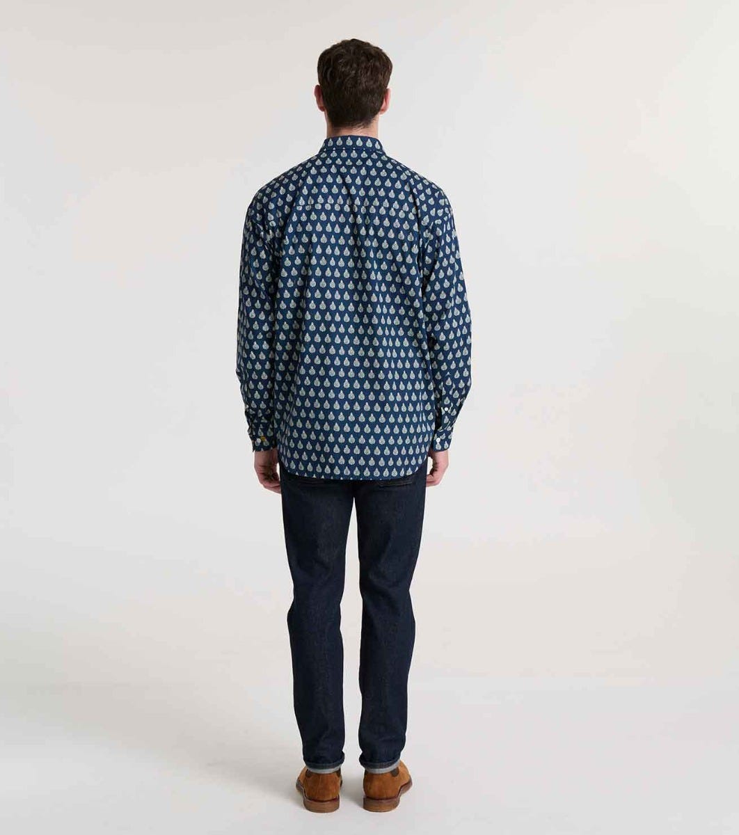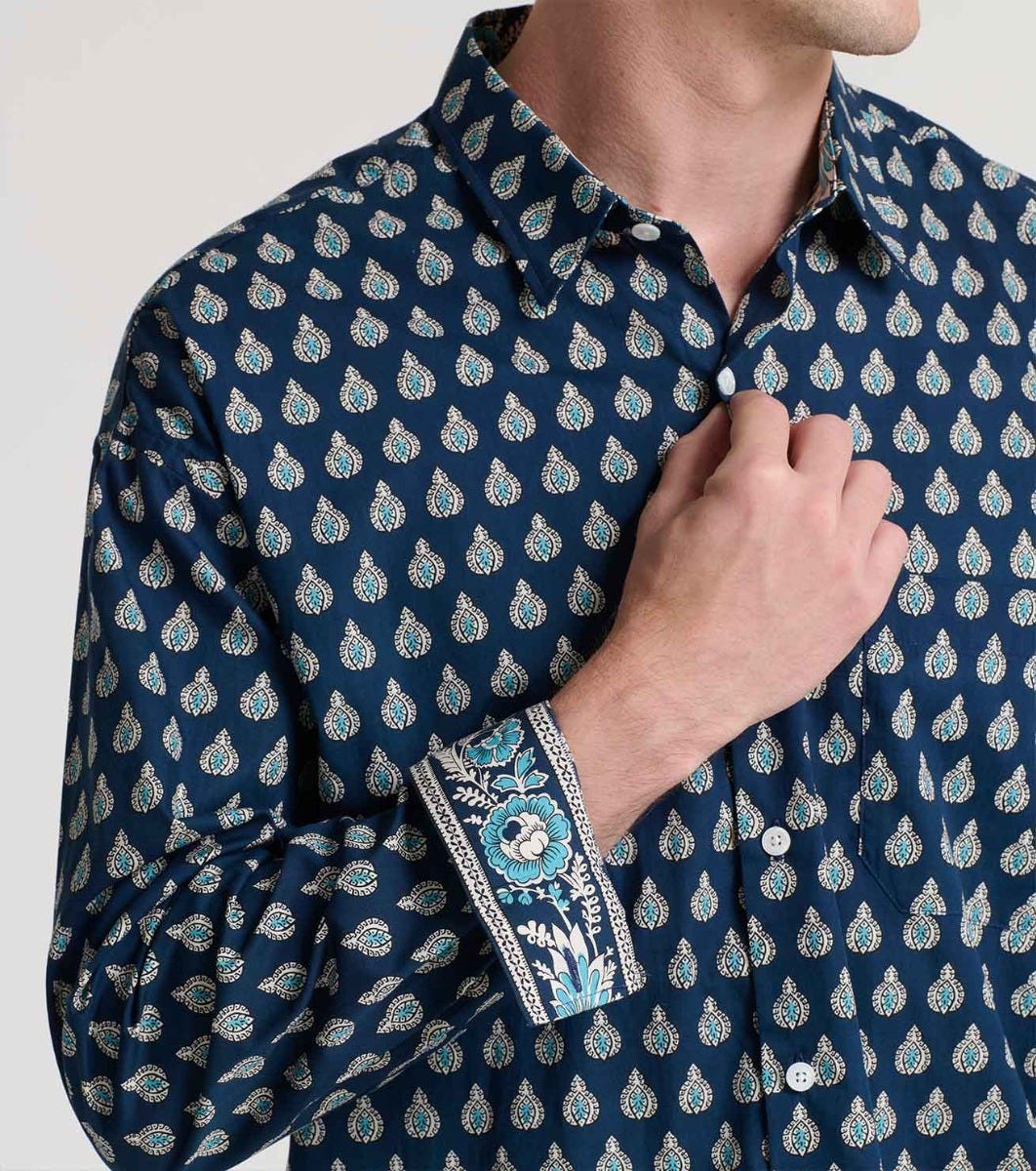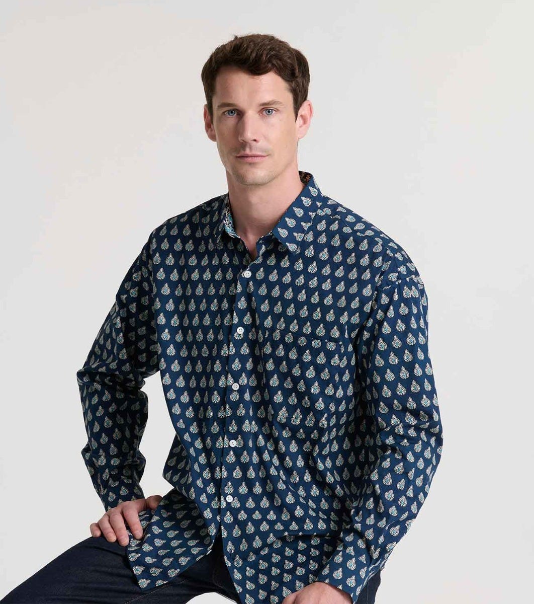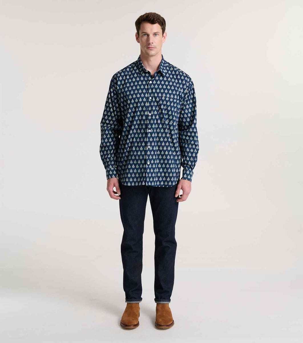 Souleiado Homme Men’s Chemise Philippe Large Scarabée Tricolore Marine Ciel | Marine Ciel