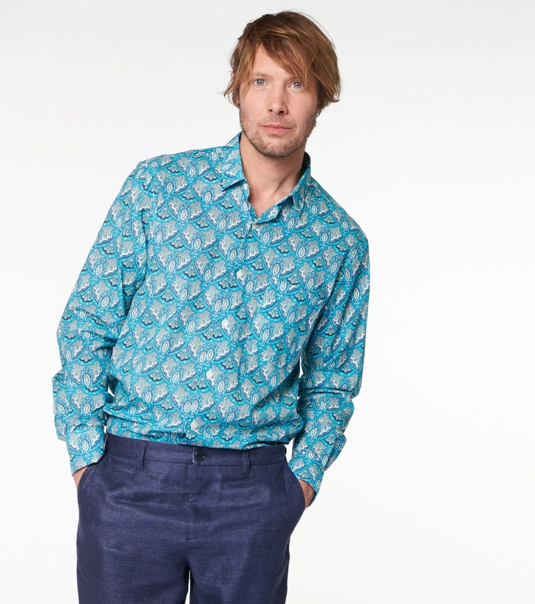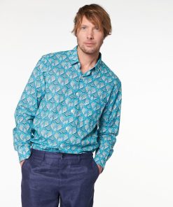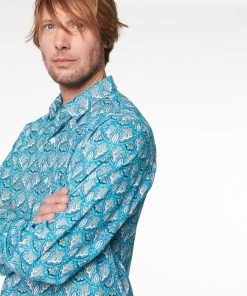 Souleiado Homme Men’s Chemise Regular Ecailles Turquoise | Turquoise