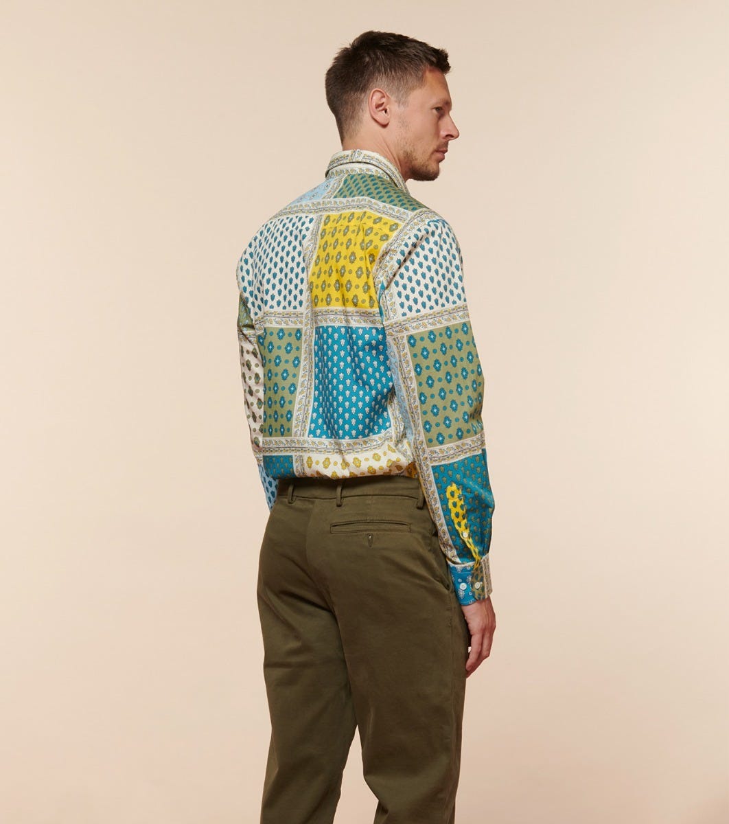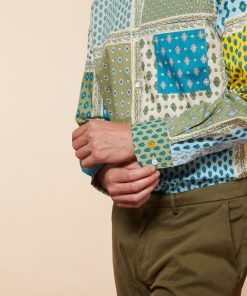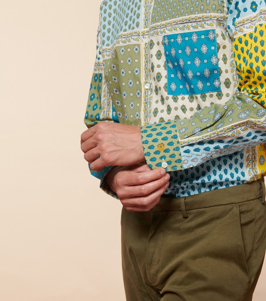 - En popeline 100% coton, imprimée avec notre motif iconique « Italienne » coloris bleu kaki