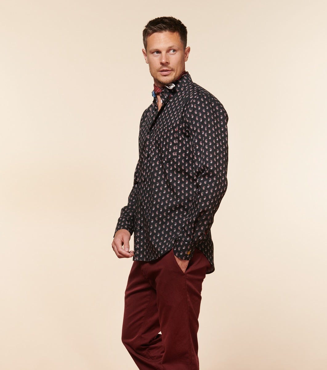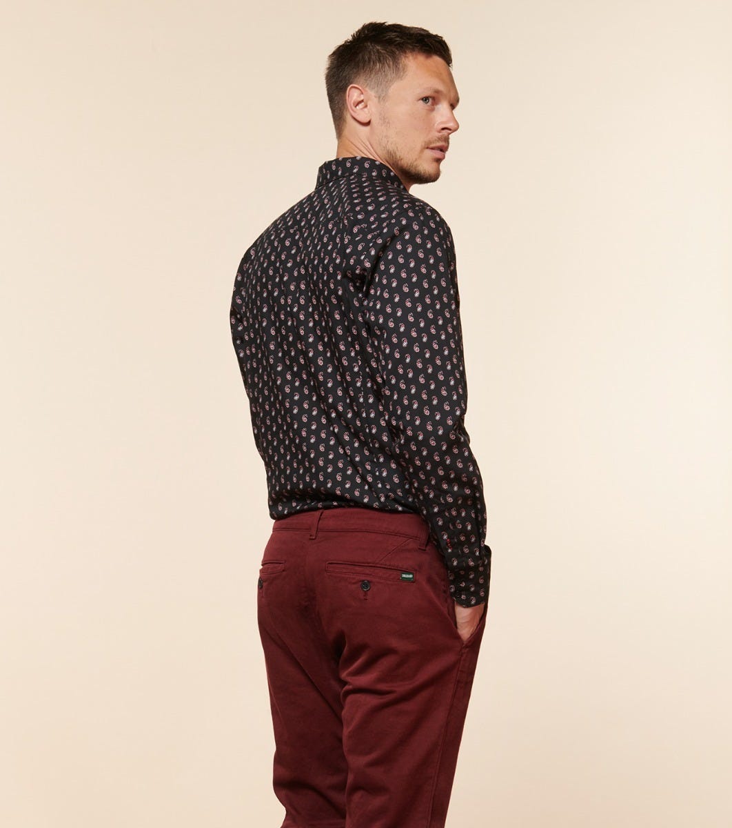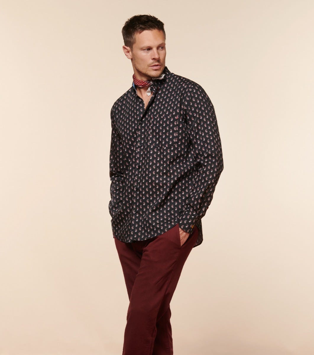- Milo, notre chemise à la coupe ajustée et au col américain avec une poche plaquée côté coeur. Plus proche du corps et légèrement cintrée à la taille, grâce à deux pinces dos, pour un porté qui dessine la silhouette. Un col boutonné casual-chic : les boutons qui retiennent les pointes font la particularité de ce col.