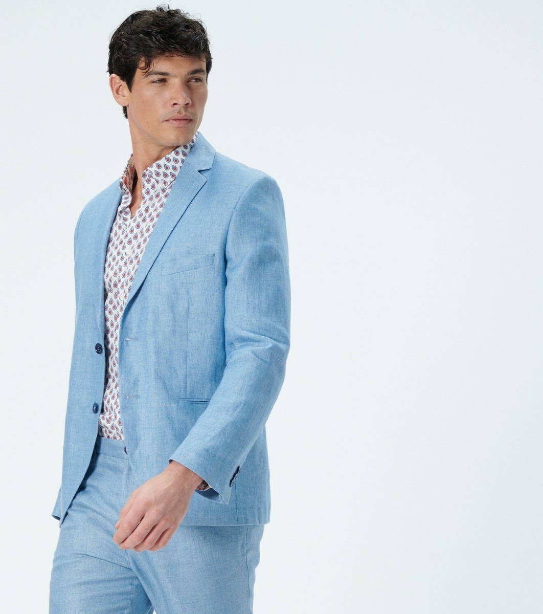 - Opposition en motif Losange indigo : doublure demi-dos, intérieurs poches et dessous de col.