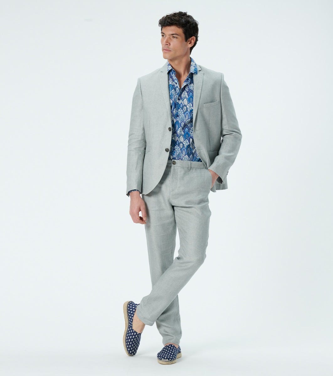 Souleiado Homme Men’s Veste Aubin Lin Gris Perle Uni | Gris